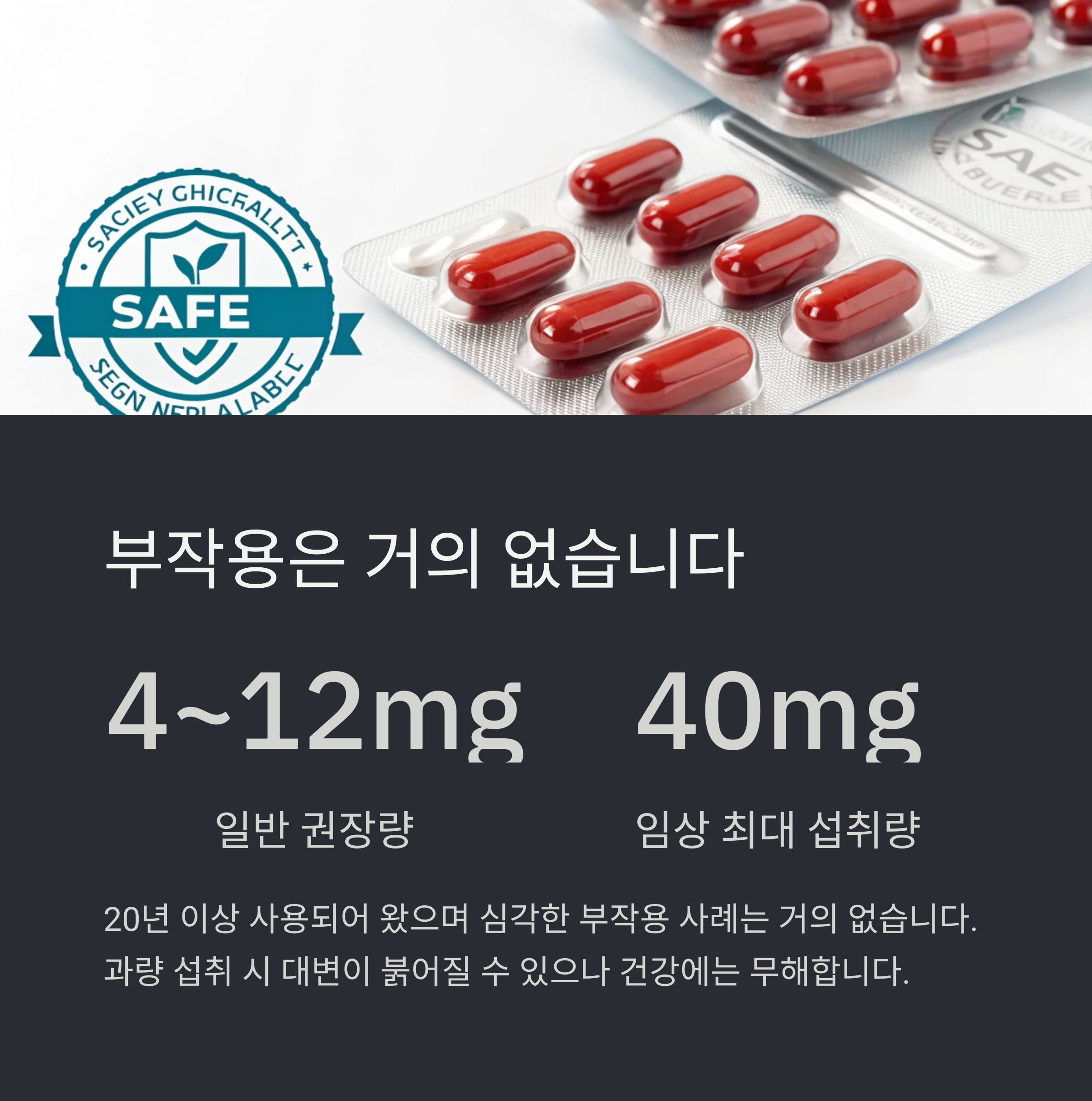 임상 최대 섭취량 40mg까지 복용 사례 존재