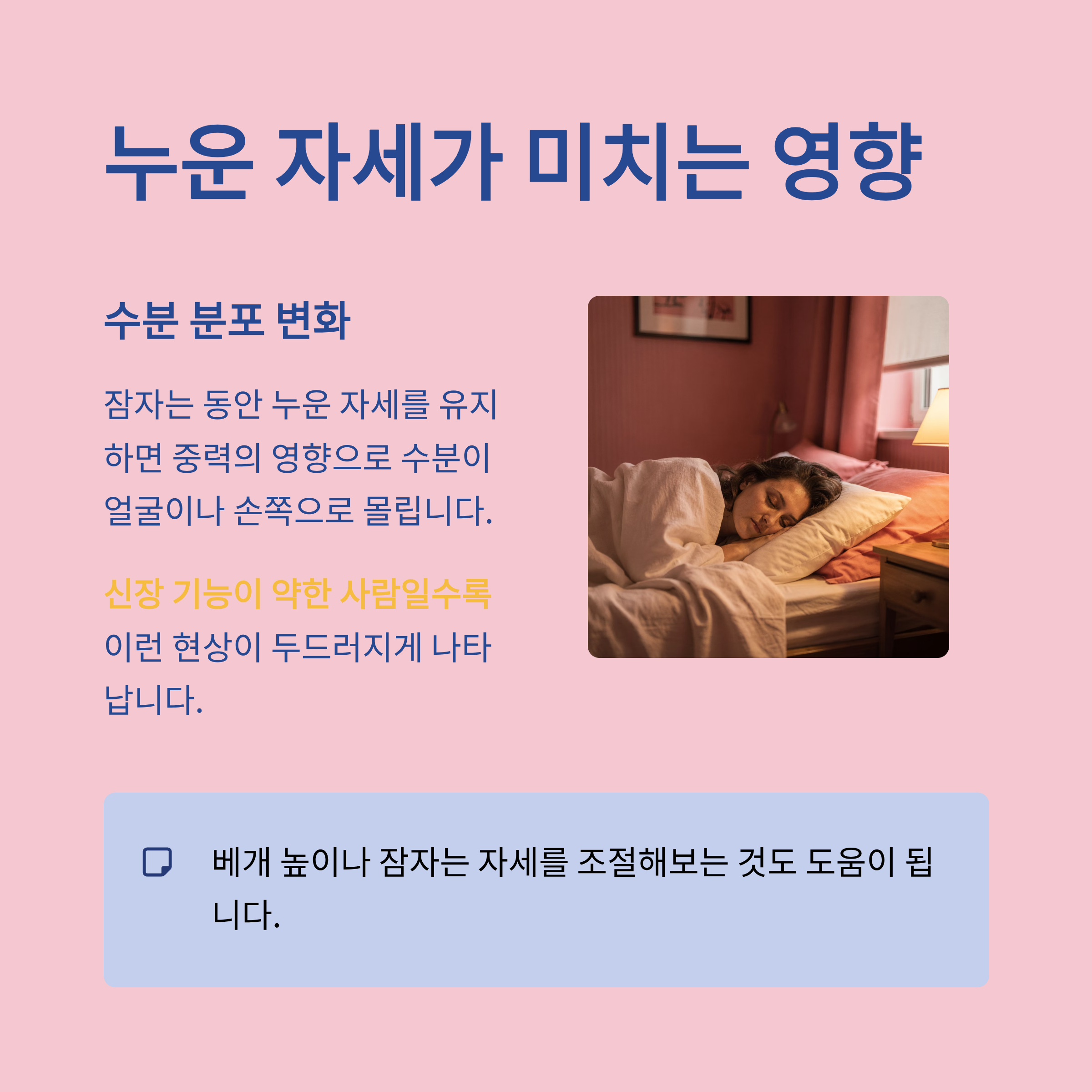 잠자는 동안 우리는 대부분 누운 자세를 유지하게 되죠.