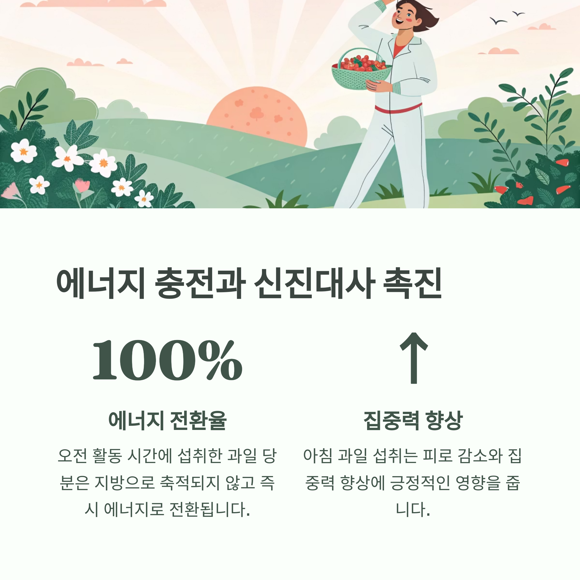 아침 과일은 포도당, 과당, 자당 등 천연 당분이 풍부해 즉각적인 에너지 공급원이 됩니다.