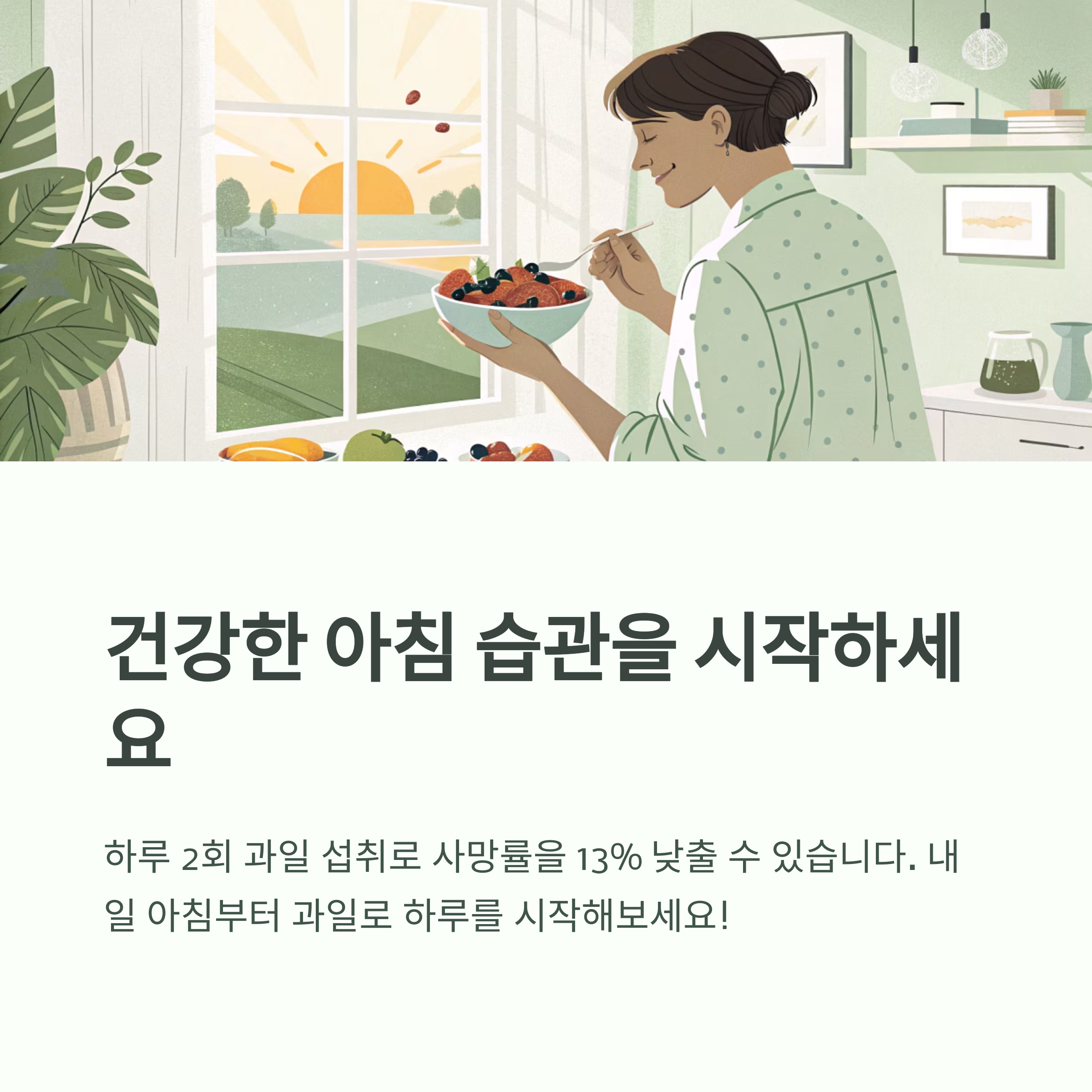 이 외에도 키위, 바나나, 베리류 등도 아침 식단에 적극 추천됩니다.