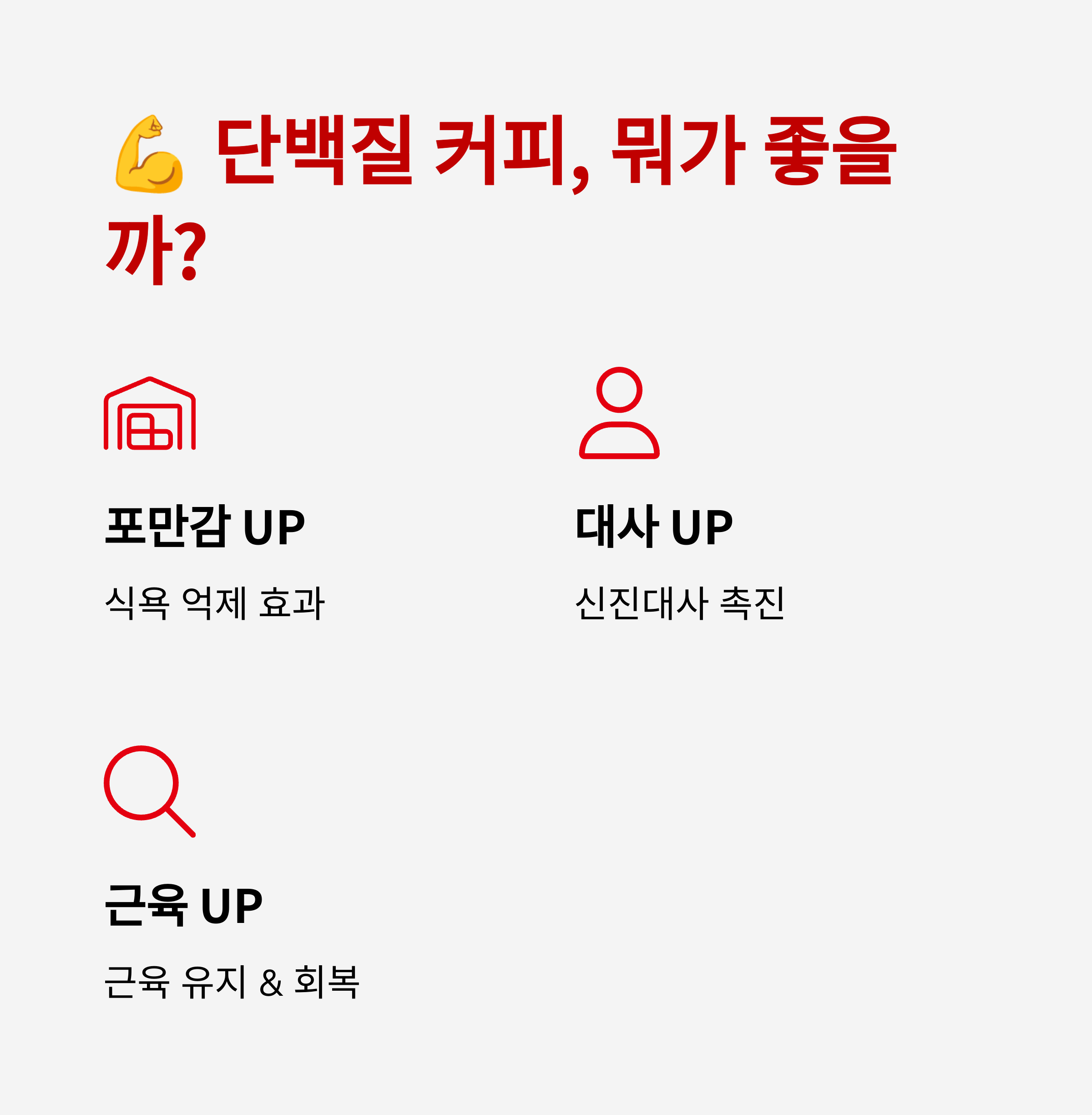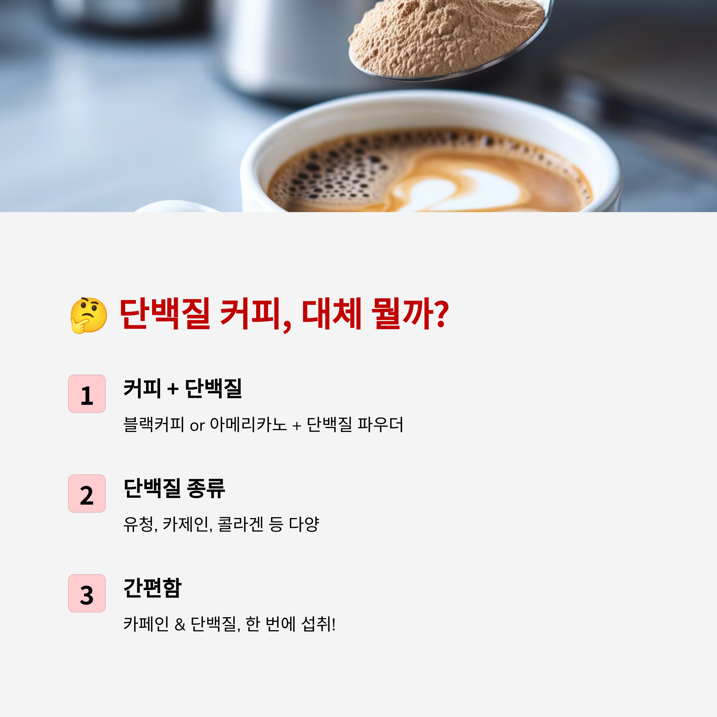| 단백질 커피란? | 블랙커피에 단백질을 첨가한 건강 음료 |
