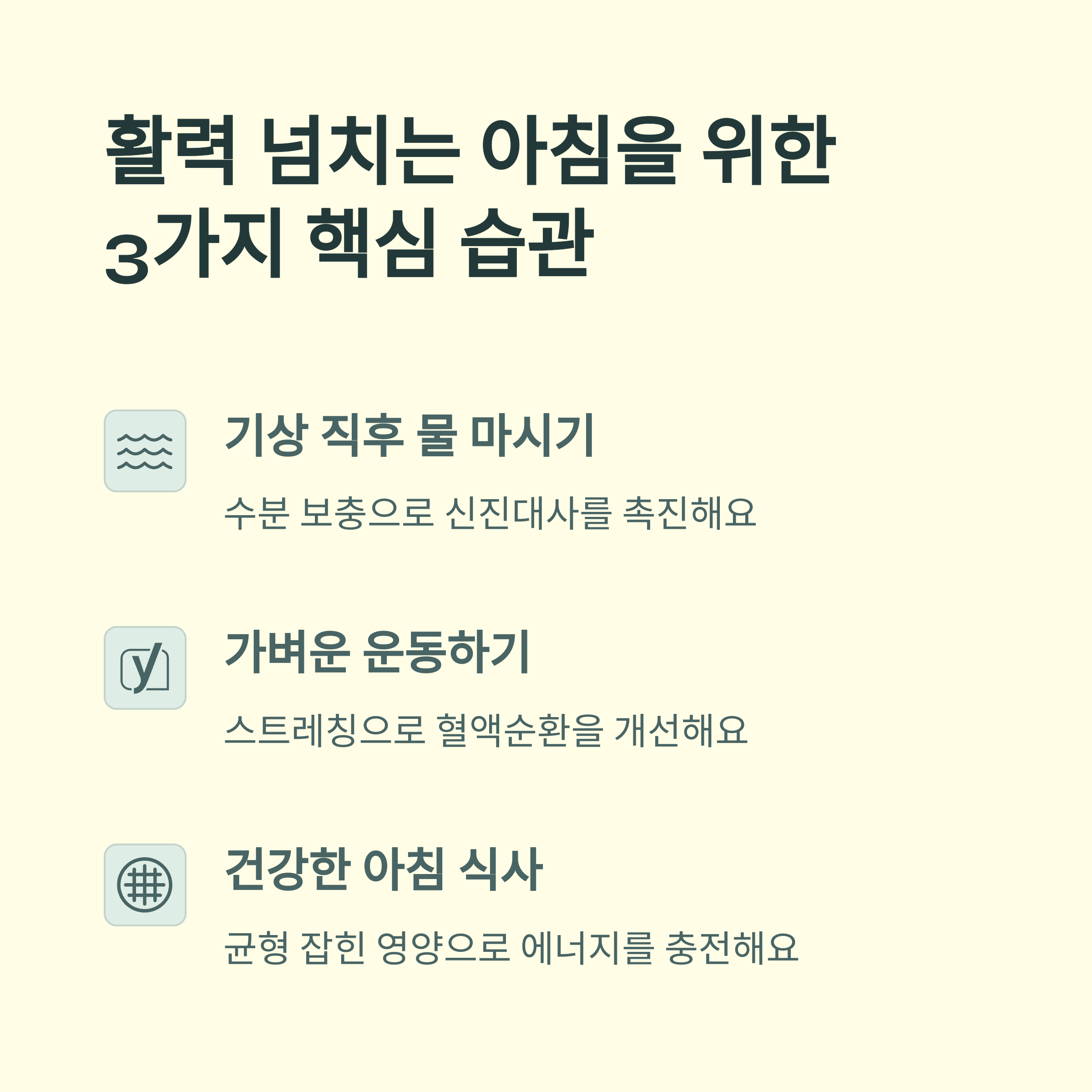 여러분, 아침을 어떻게 시작하고 계신가요? 단 몇 가지 습관을 바꾸는 것만으로도 하루의 에너지가 완전히 달라질 수 있다는 사실, 알고 계셨나요?