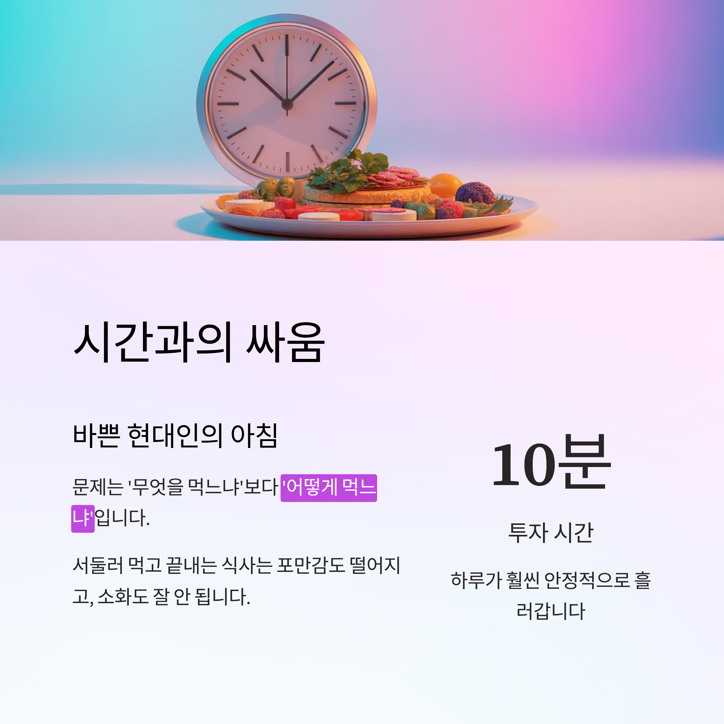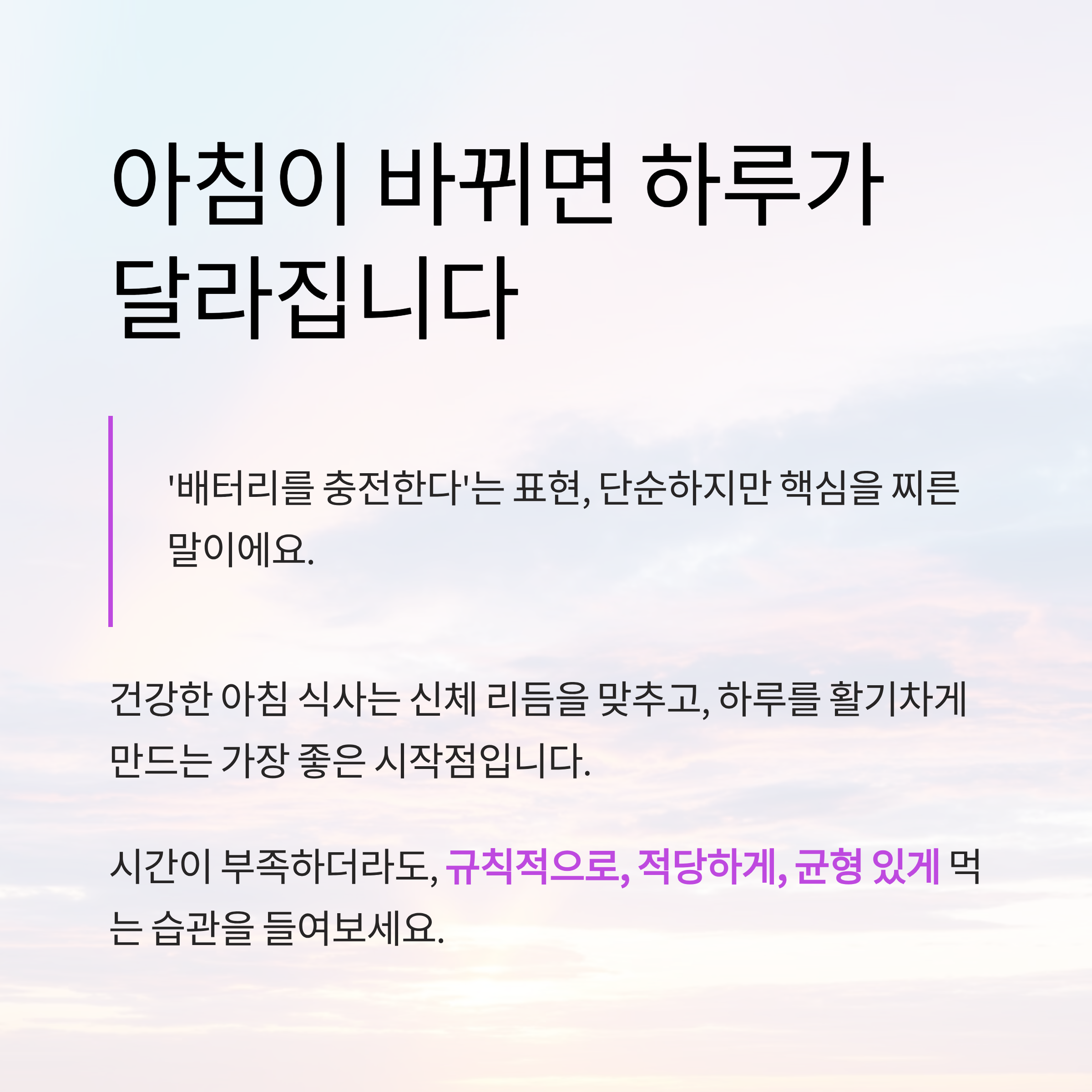 아침 식사에 10분만 투자해도 하루가 훨씬 안정적으로 흘러갑니다.