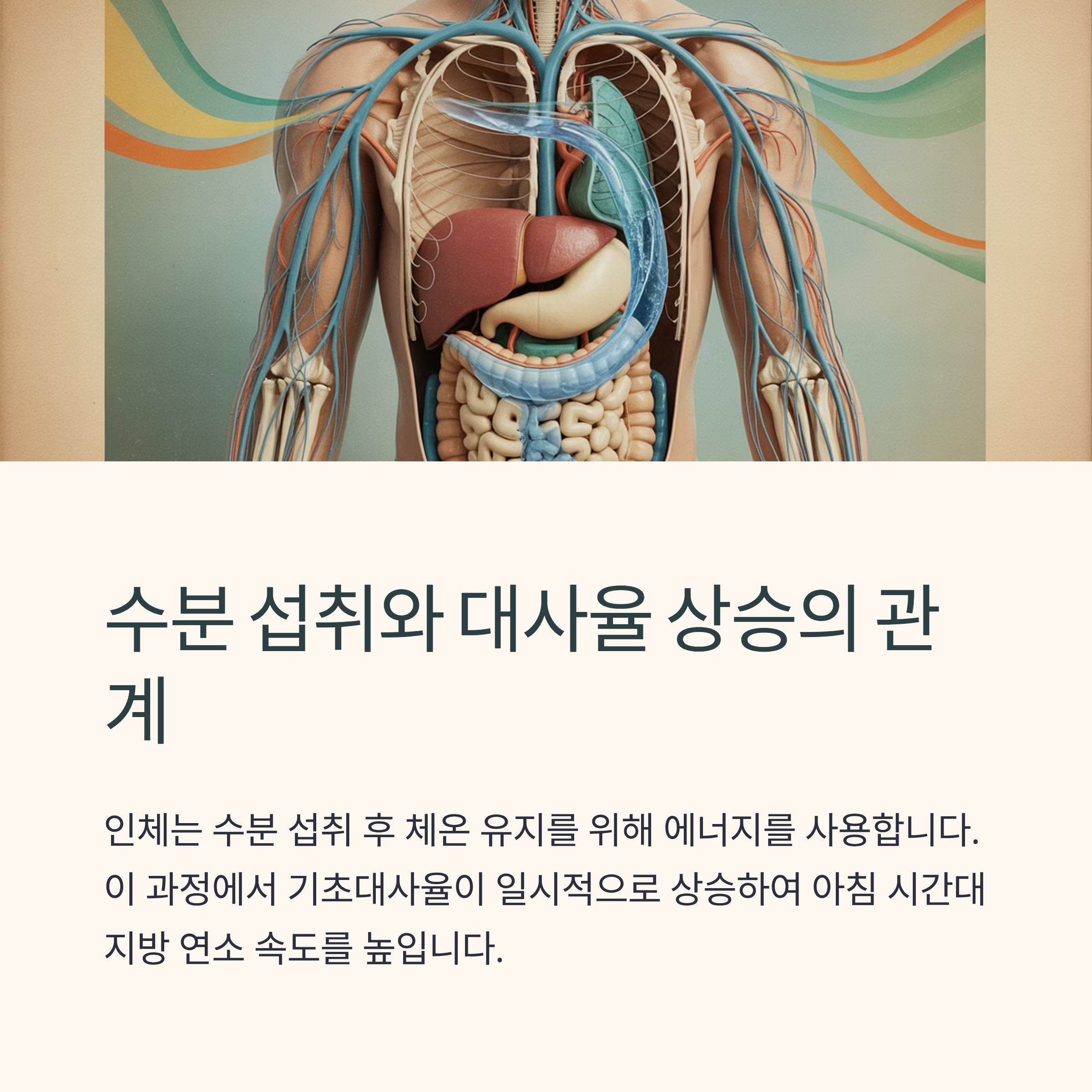 인체는 수분 섭취 후 체온을 유지하기 위해 에너지를 사용합니다. 이 과정에서