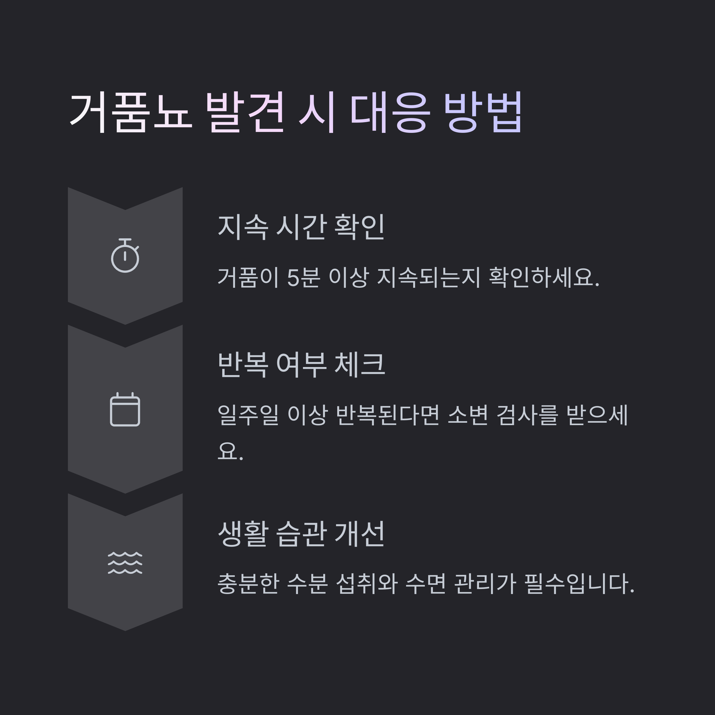 거품뇨가 나타났을 때 실천해야 할 점검 사항은 다음과 같습니다: