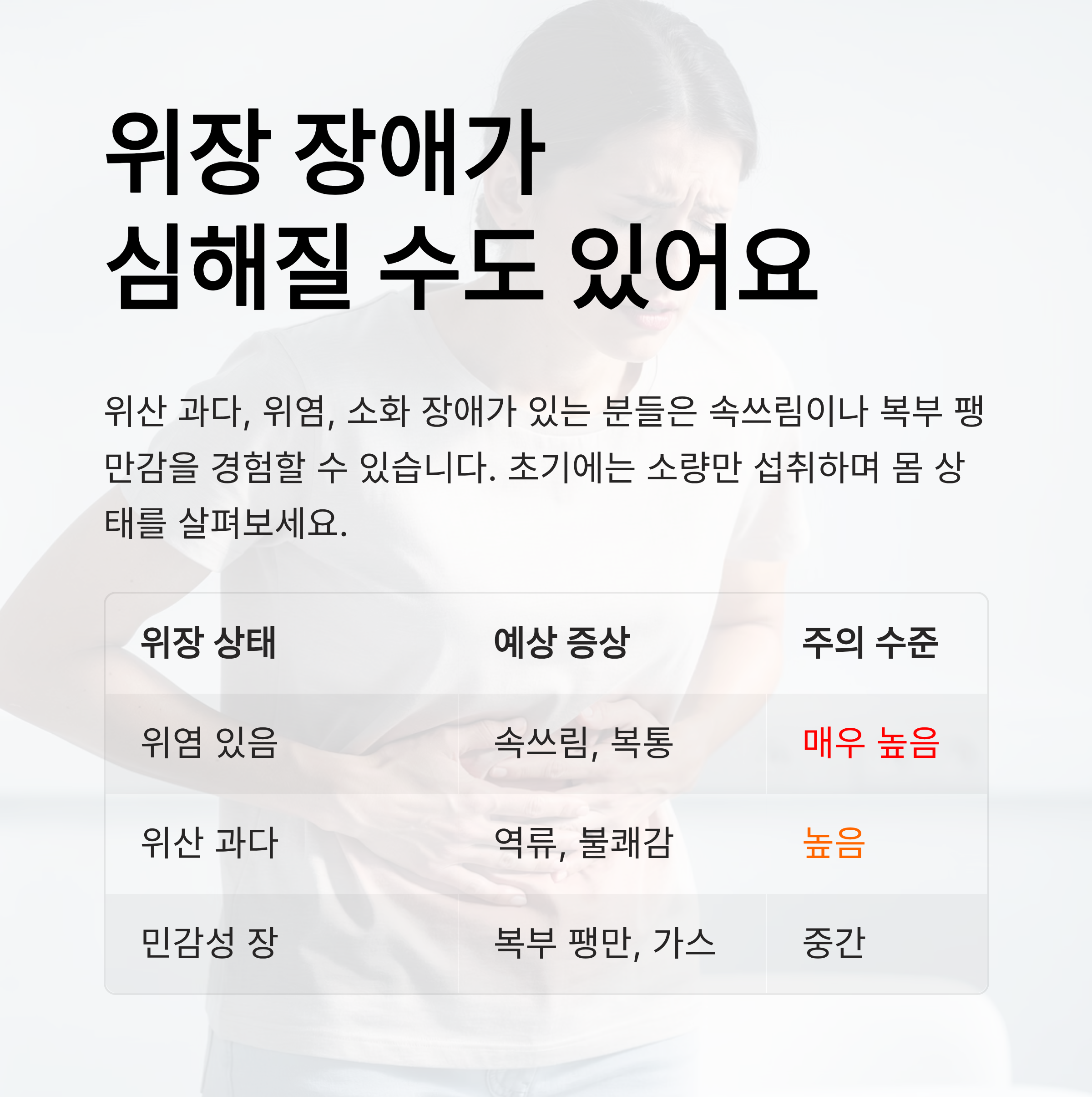 담낭 질환 이력 있는 분들은 반드시 의료진과 상담 후 섭취를 결정해야 합니다.