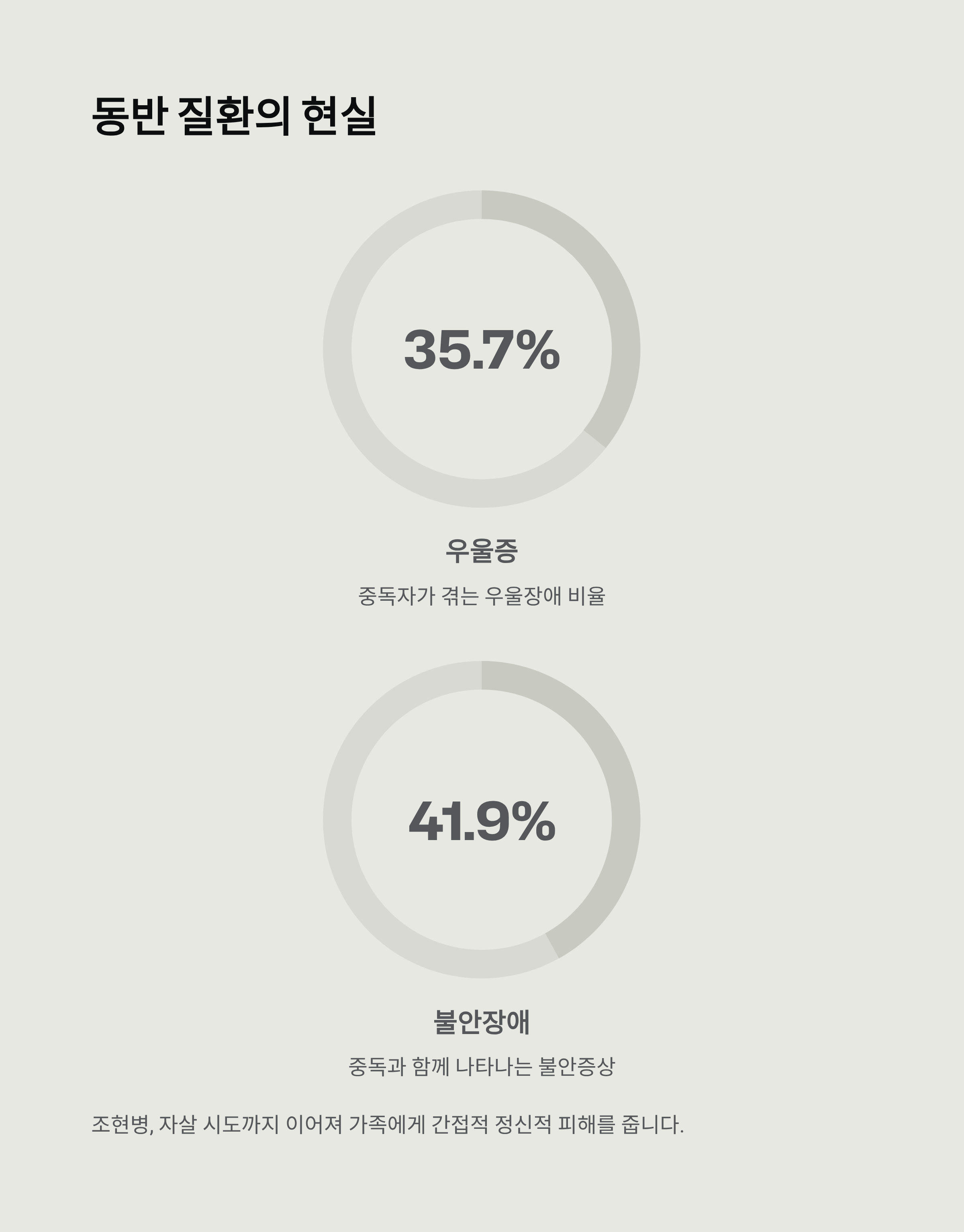 실제 조사에 따르면 중독자 중 35.7%는 우울증, 41.9%는 불안장애를 겪고 있다고 합니다.