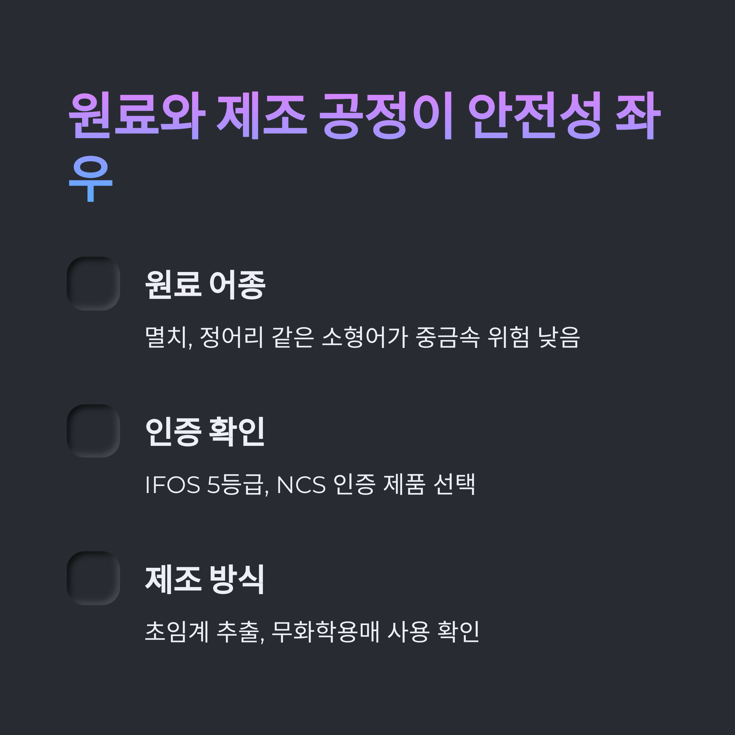 원료의 출처와 제조 공정이 안전성 좌우