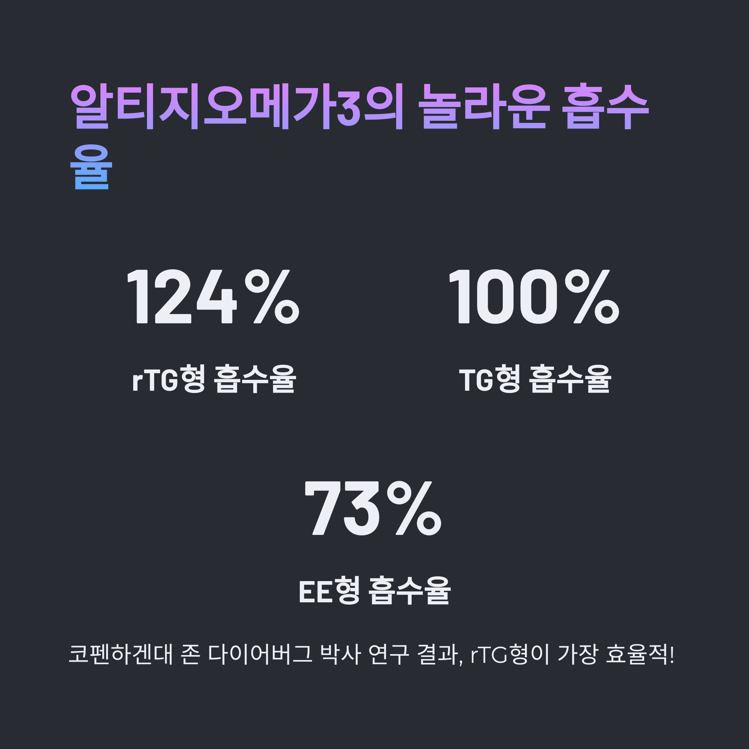 흡수율은 EE형 73%, TG형 100%, rTG형 124%로 밝혀졌습니다.