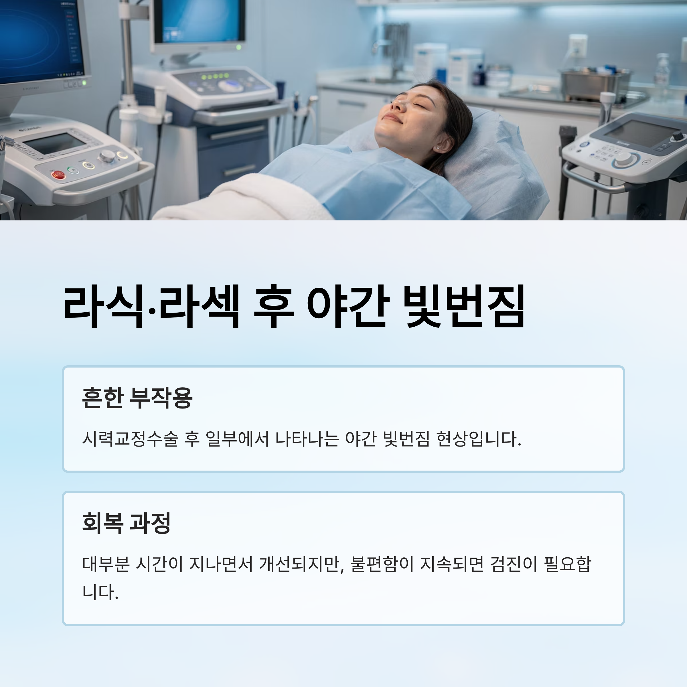 시력교정수술 후 일부에서 나타나는 흔한 부작용 중 하나가 야간 빛번짐입니다.