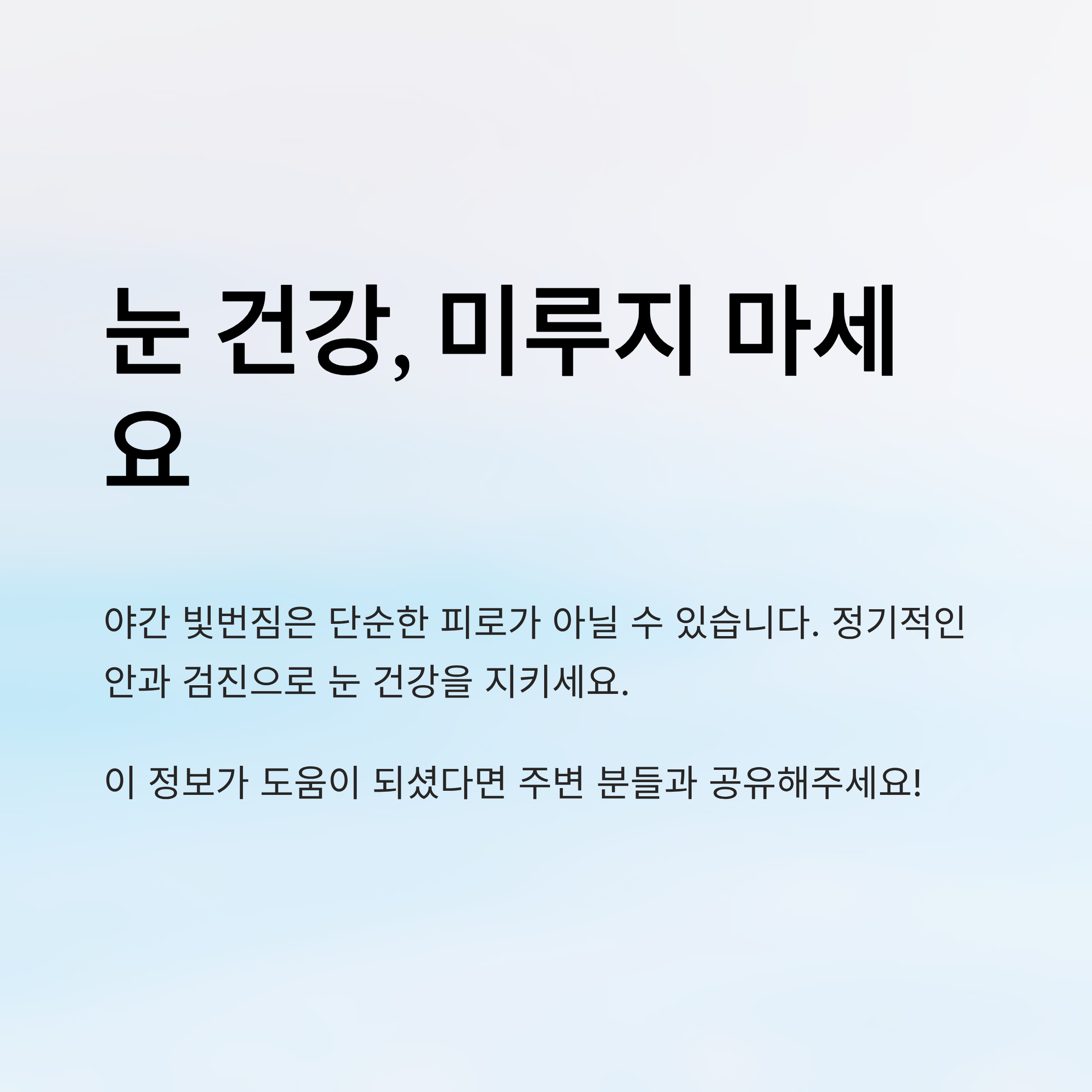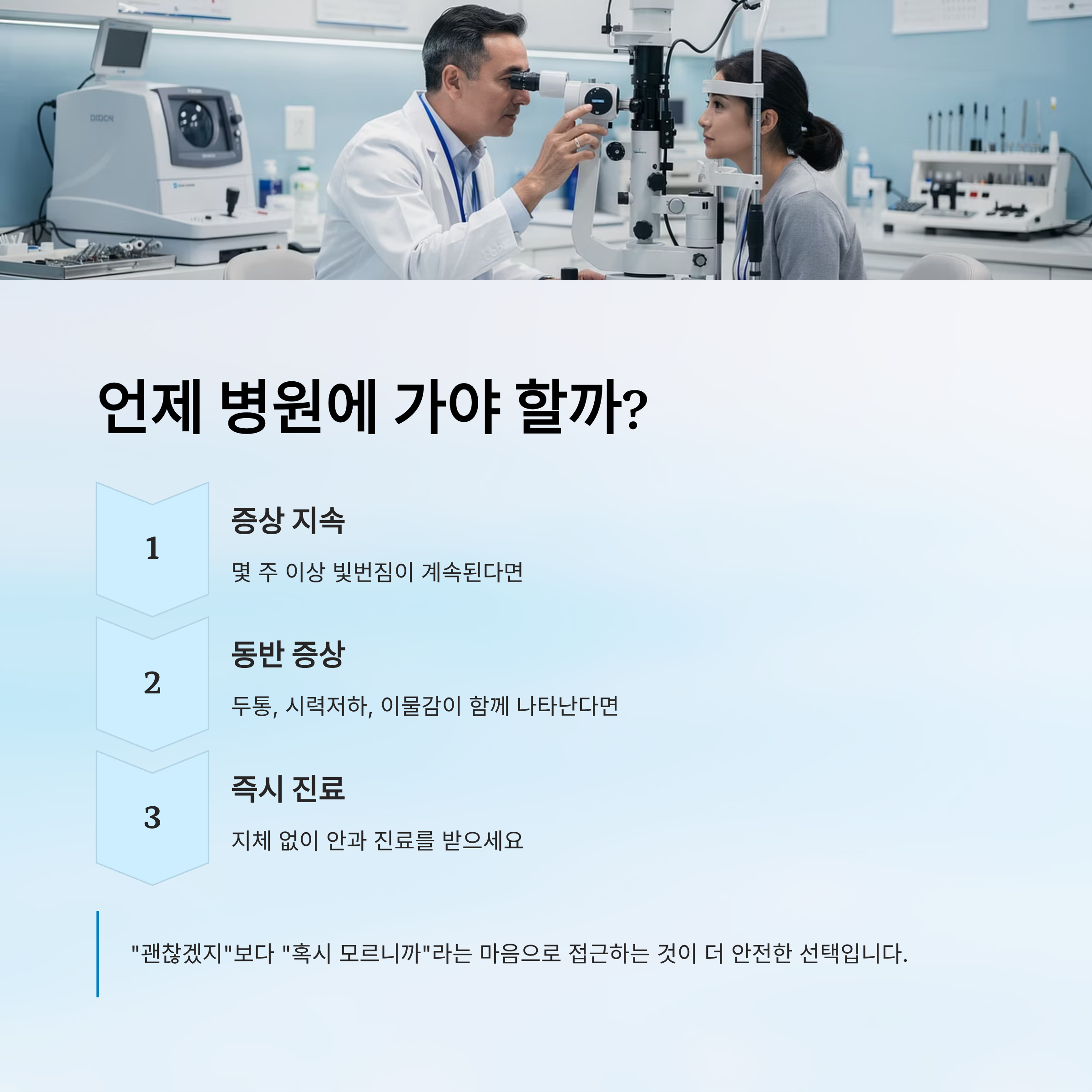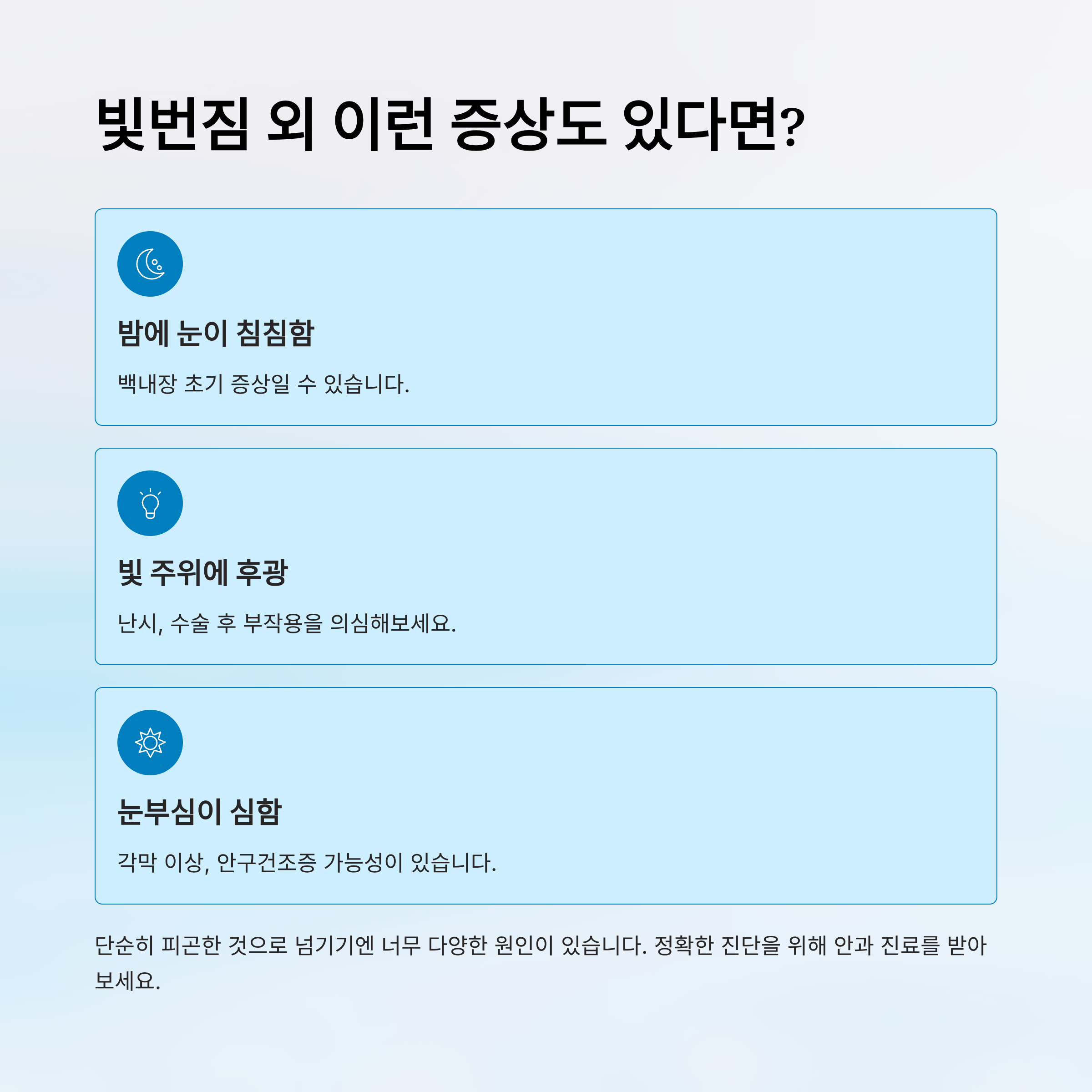 증상이 몇 주 이상 지속되거나, 빛번짐과 함께 두통, 시력저하, 이물감 등이 동반된다면