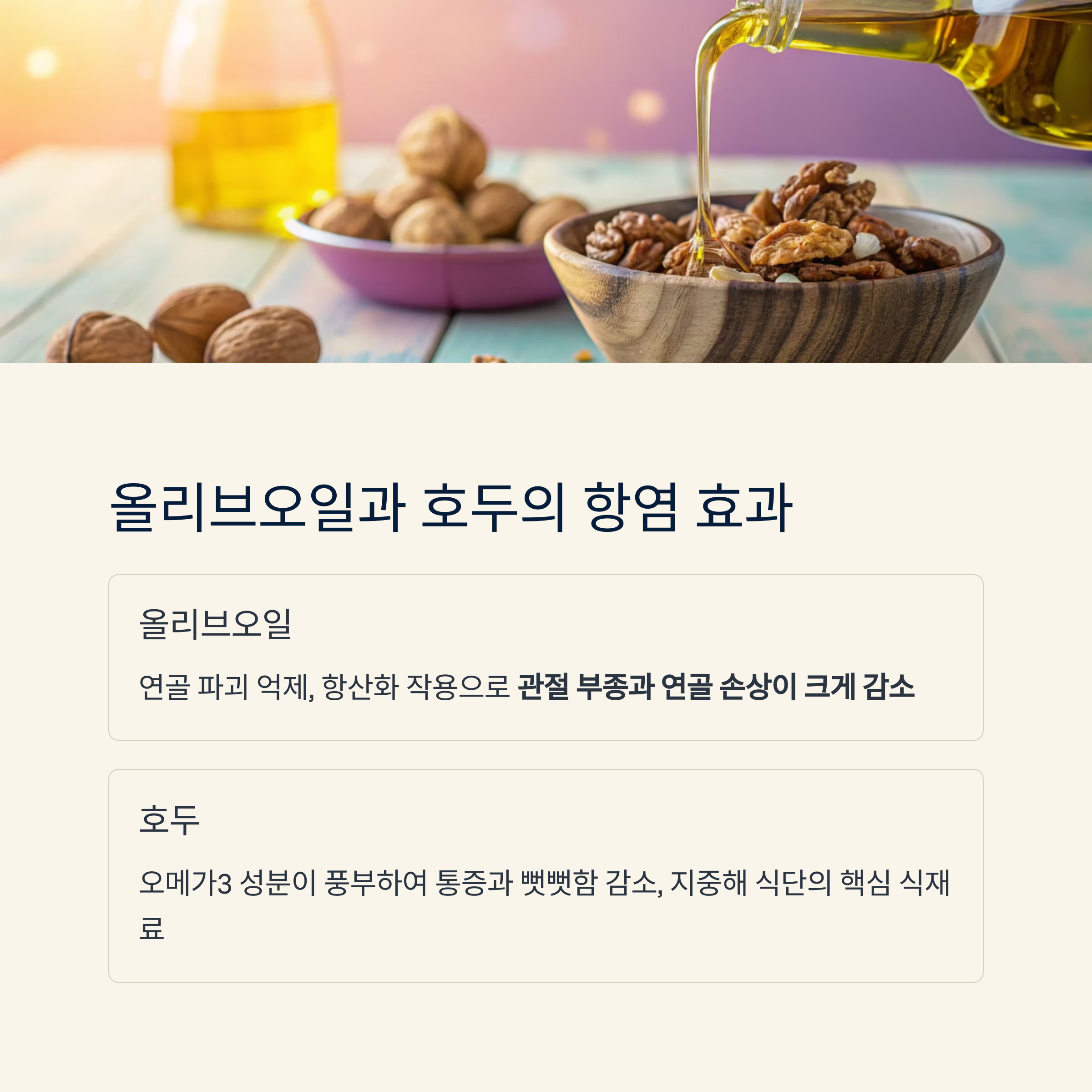 올리브오일과 호두, 천연 항염 솔루션