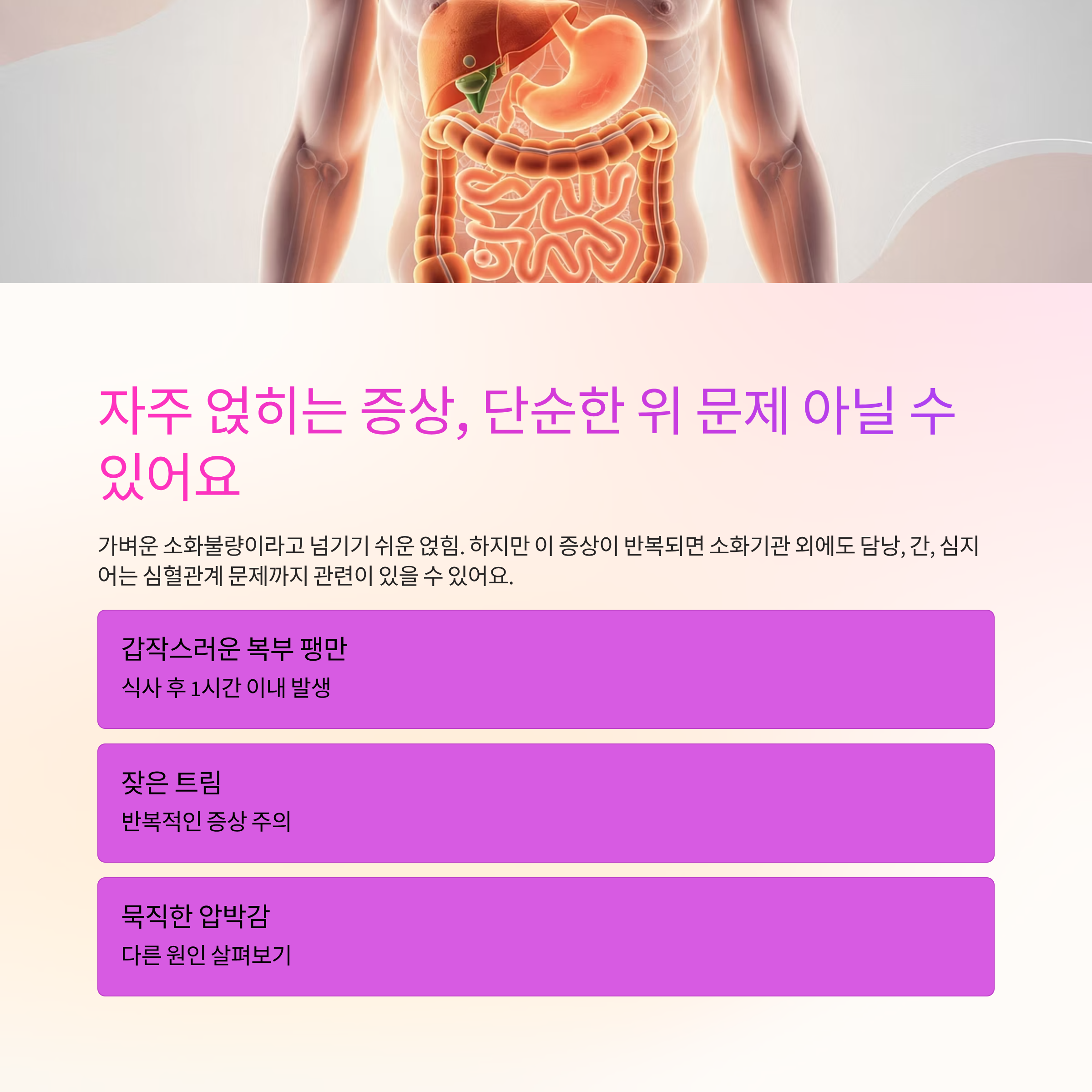음식을 먹고 나면 종종 겪는 더부룩함이나 속이 꽉 찬 느낌, 우리는 흔히 ‘소화가 안 된다’며 넘기곤 합니다.