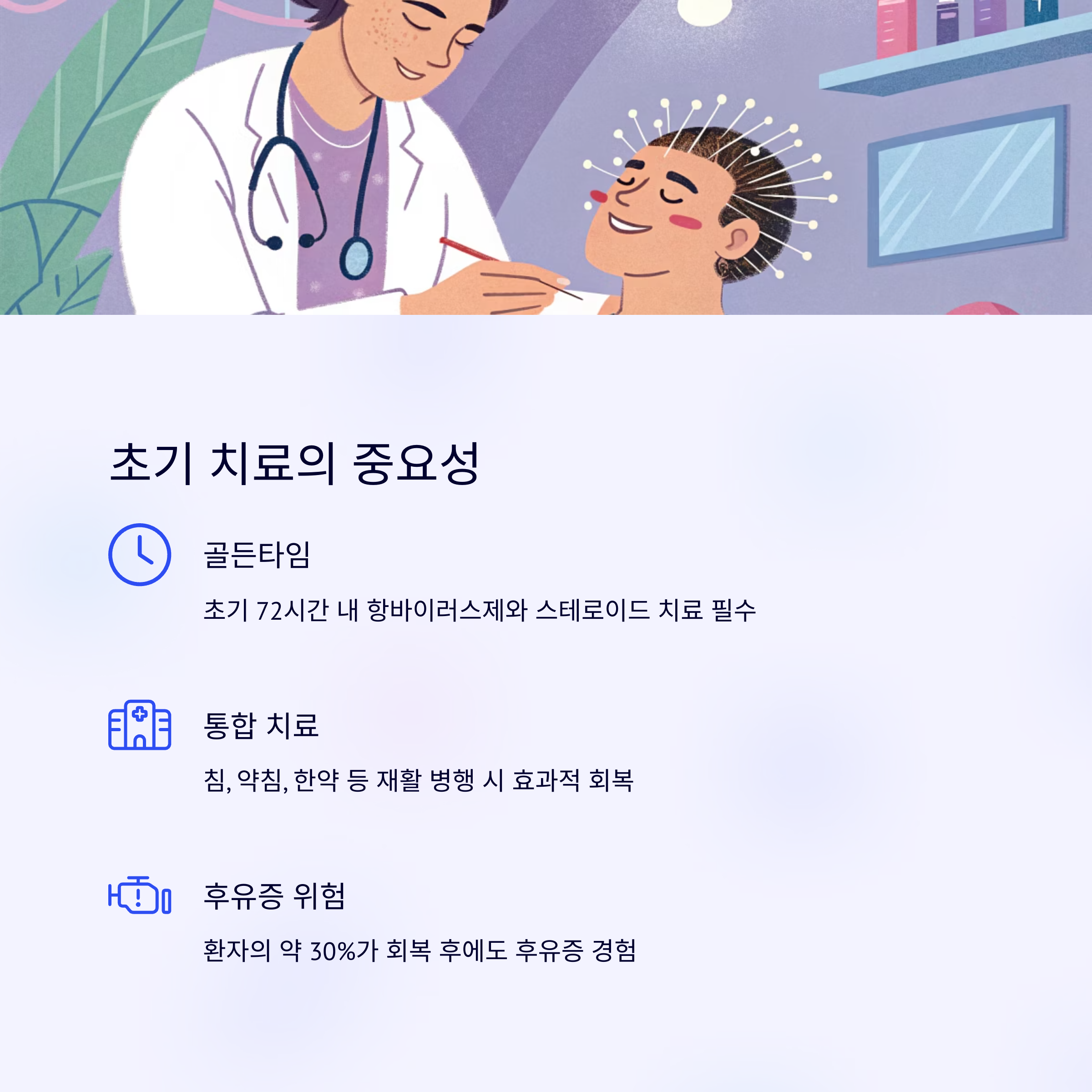 있습니다. 초기 72시간 내 항바이러스제와 스테로이드를 통해 염증을 조절하고,