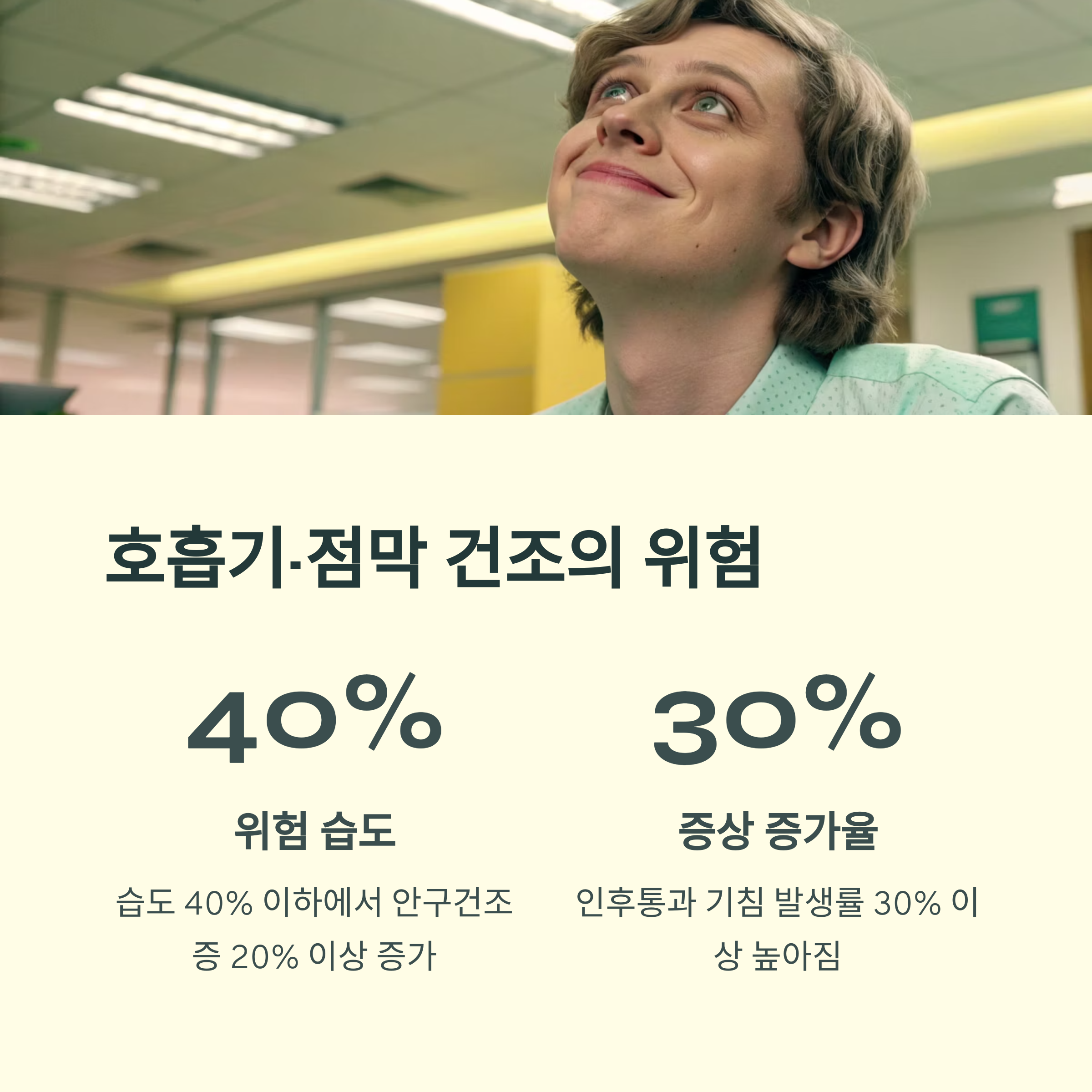 대한안과학회에 따르면 습도가 40% 이하로 떨어지면