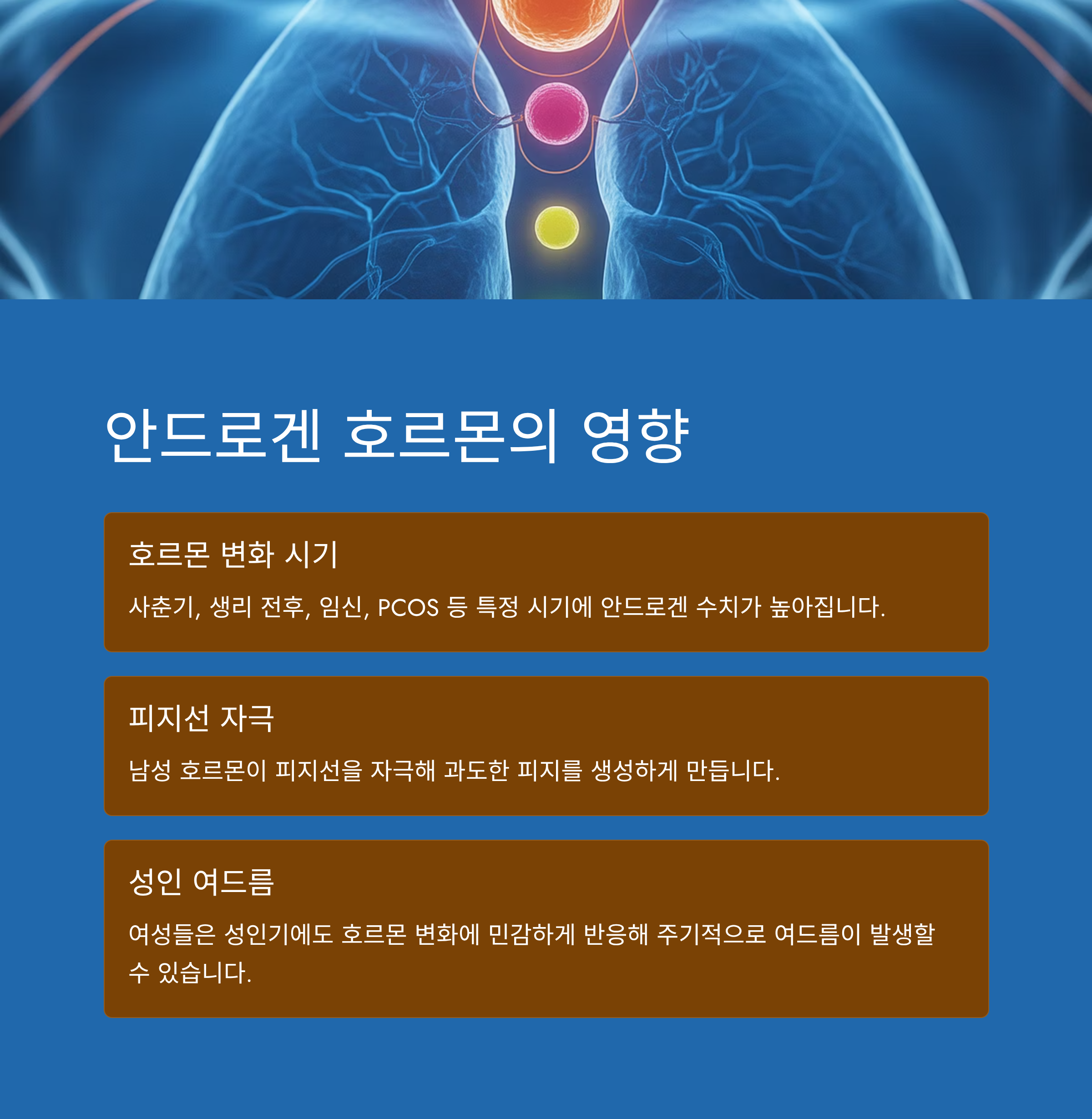 안드로겐 호르몬이 피지 분비를 자극합니다