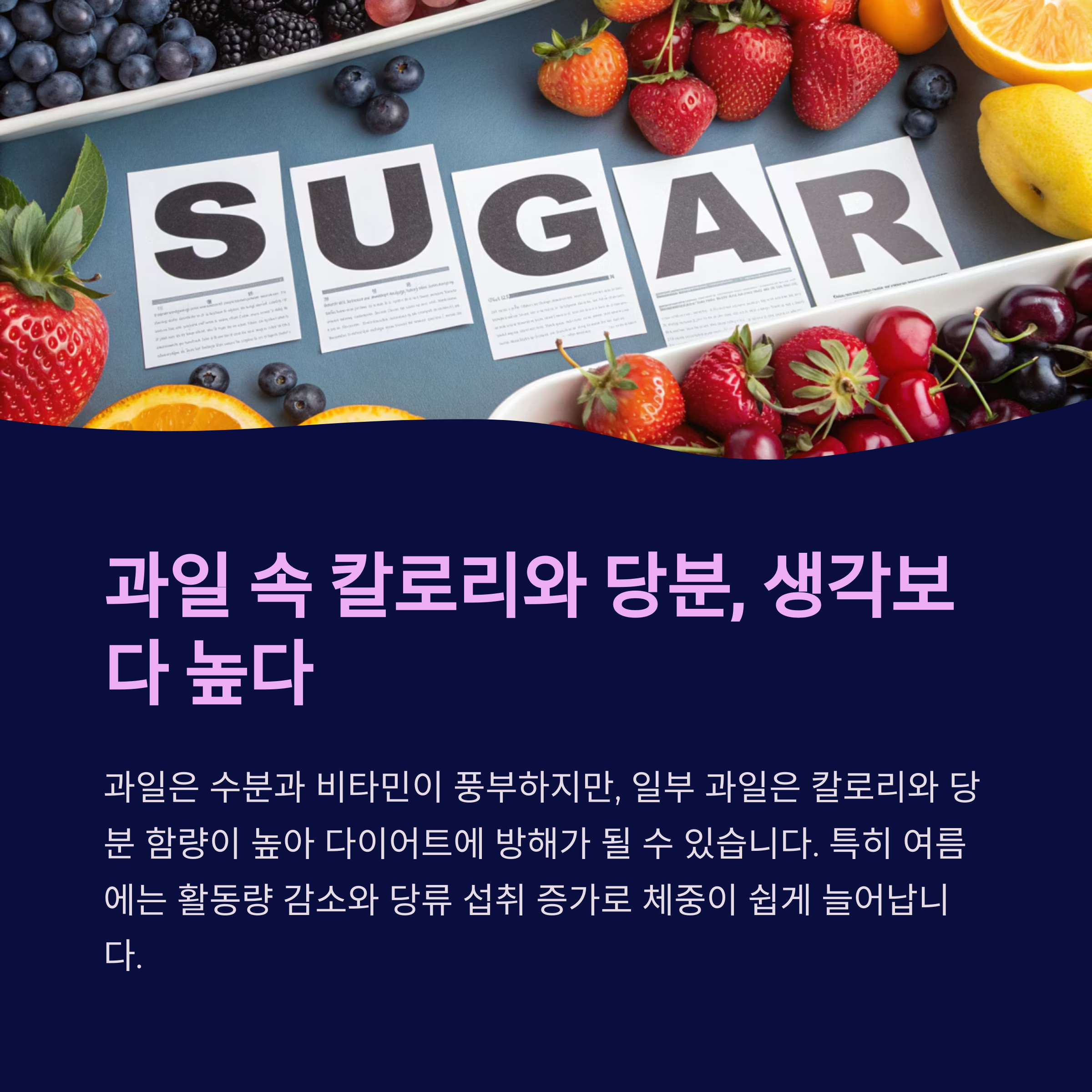 과일은 수분과 영양이 풍부하지만 당분 함량을 무시하면 오히려 다이어트 실패로 이어집니다.