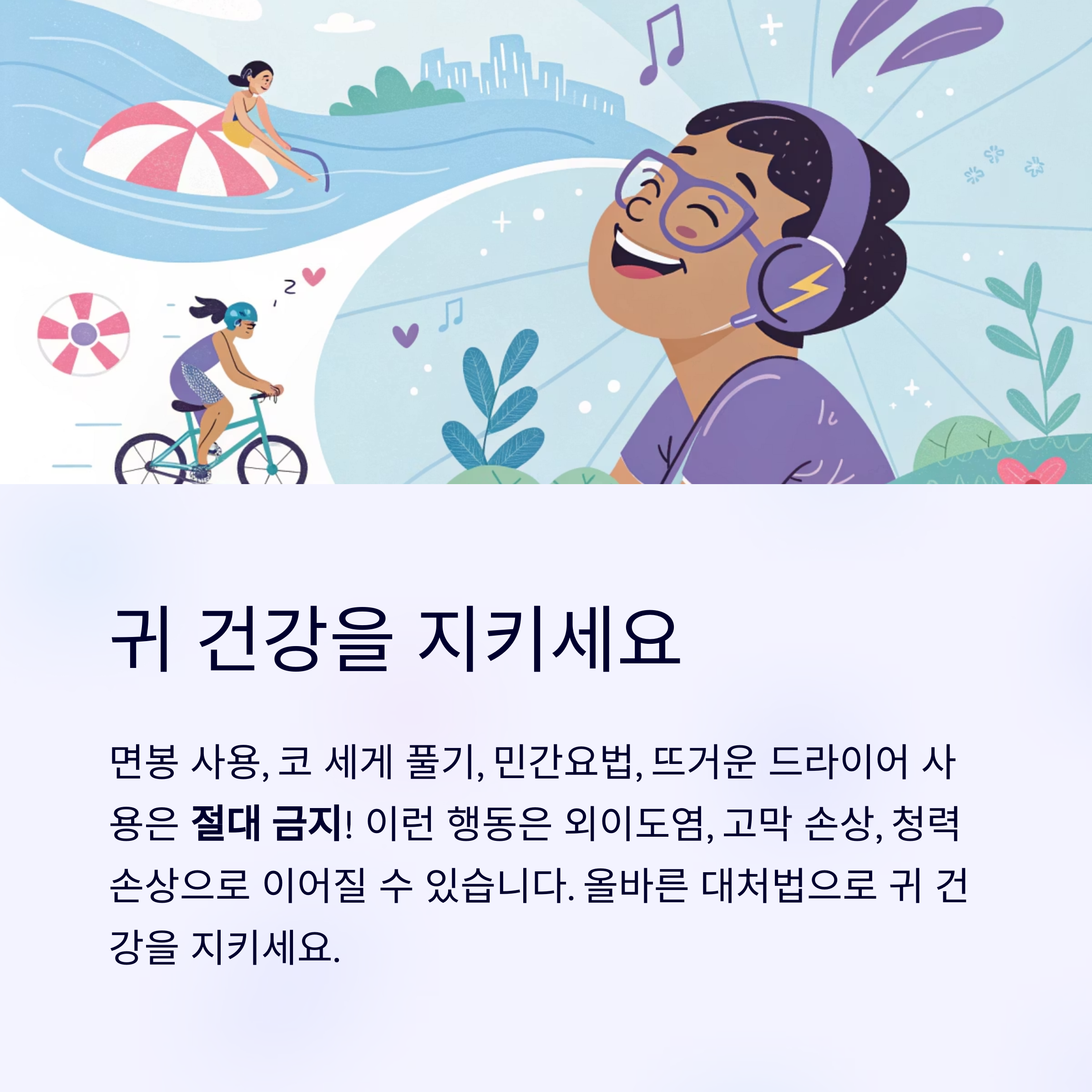 올바른 대처법을 숙지하고 실천하는 것이 건강한 귀를 지키는 핵심입니다.