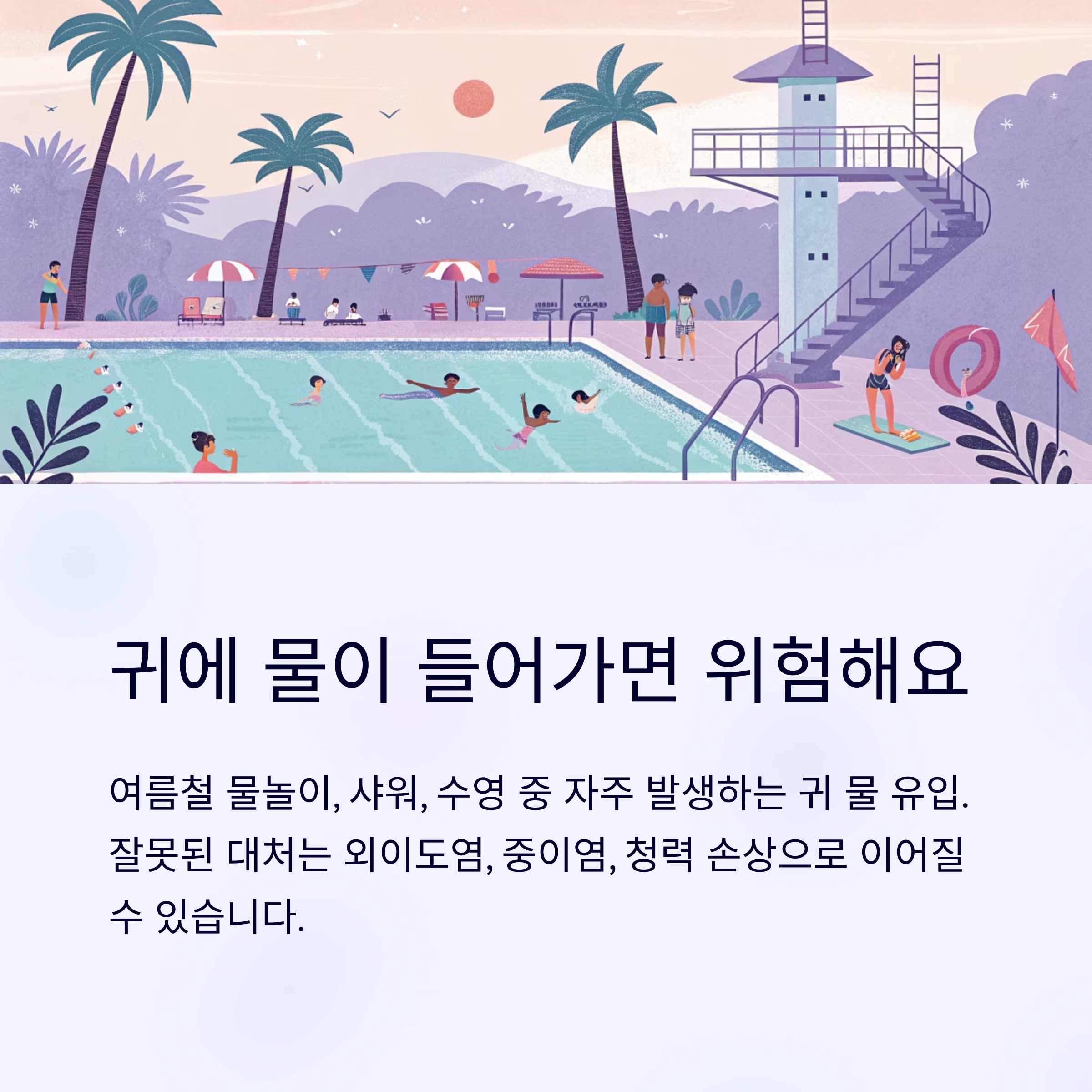 귀에 물이 들어가는 상황은 여름철 물놀이, 샤워, 수영 등에서 자주 발생합니다.
