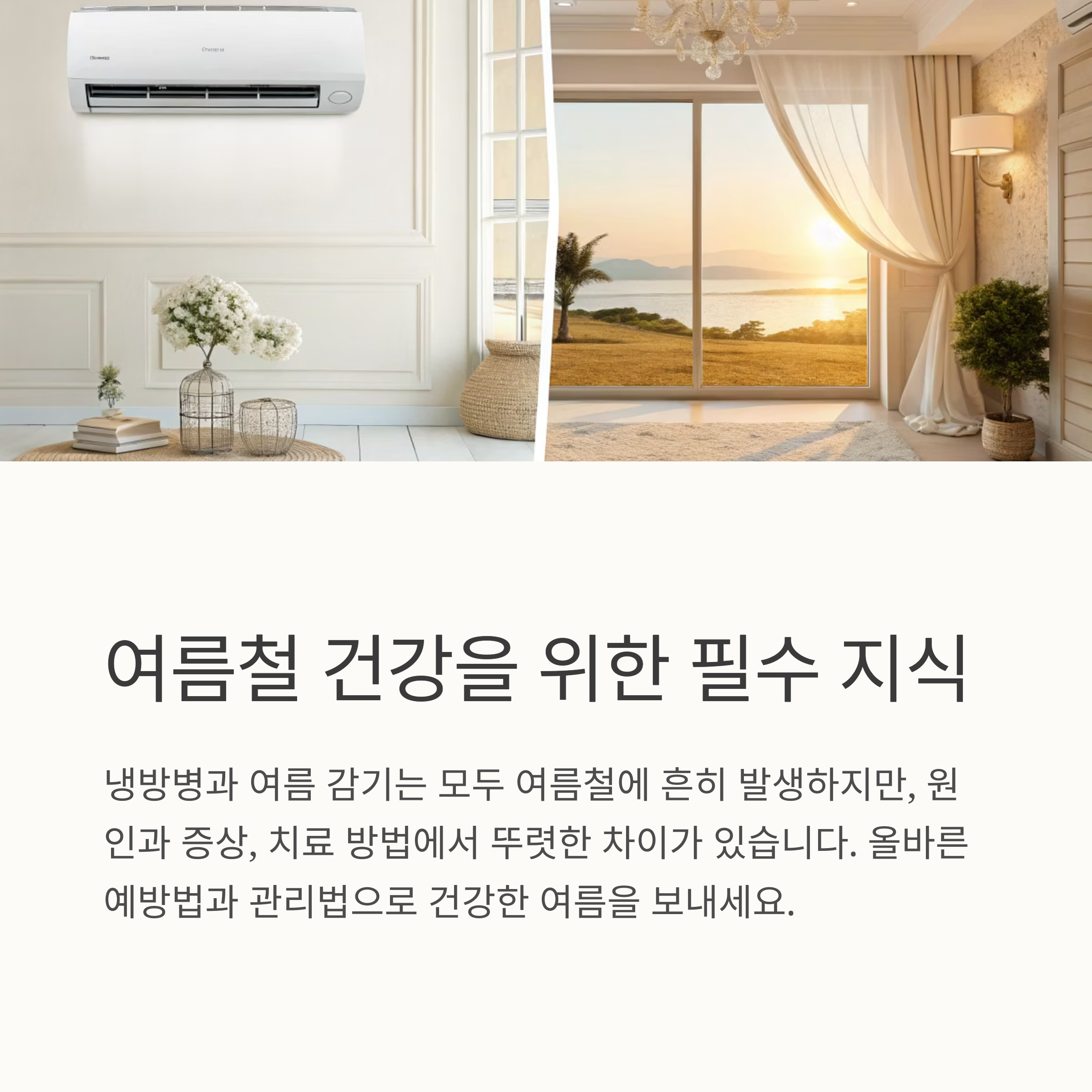 여름철 건강을 지키기 위해서는 냉방병과 여름 감기의 차이를 정확히 이해하는 것이 필수입니다.