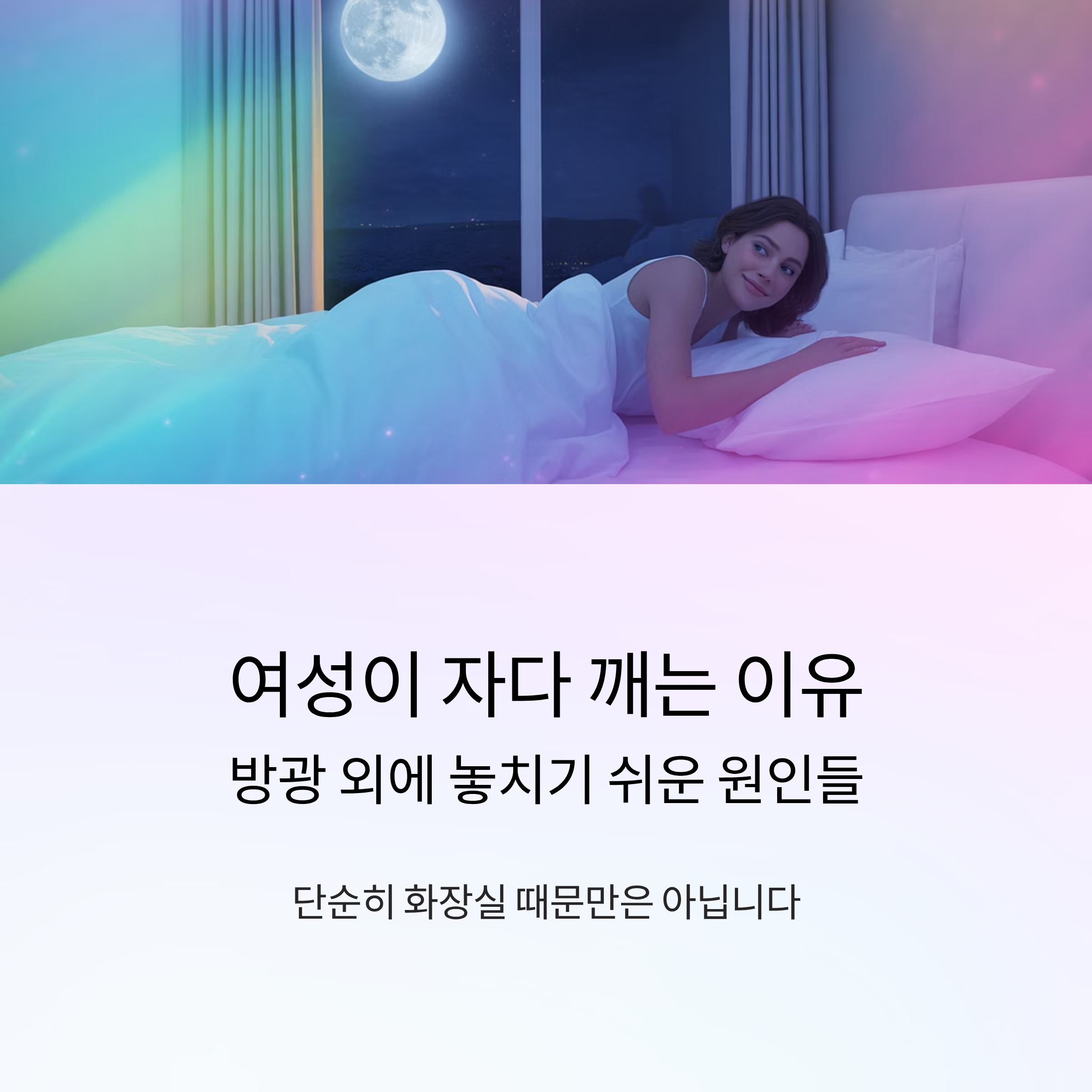 수면 중 자주 깨는 현상, 많은 여성분들이 공감하실 텐데요. 대부분은 "화장실이 급해서"라고 생각하지만, 실제로는 훨씬 더 복합적인 원인들이 작용합니다. 생리주기, 폐경, 호르몬 변화, 심지어는 운동 주기까지 수면에 영향을 미칠 수 있죠. 오늘은 방광 외에도 여성이 자다 깨어나는 다양한 원인들에 대해 하나씩 풀어보겠습니다.