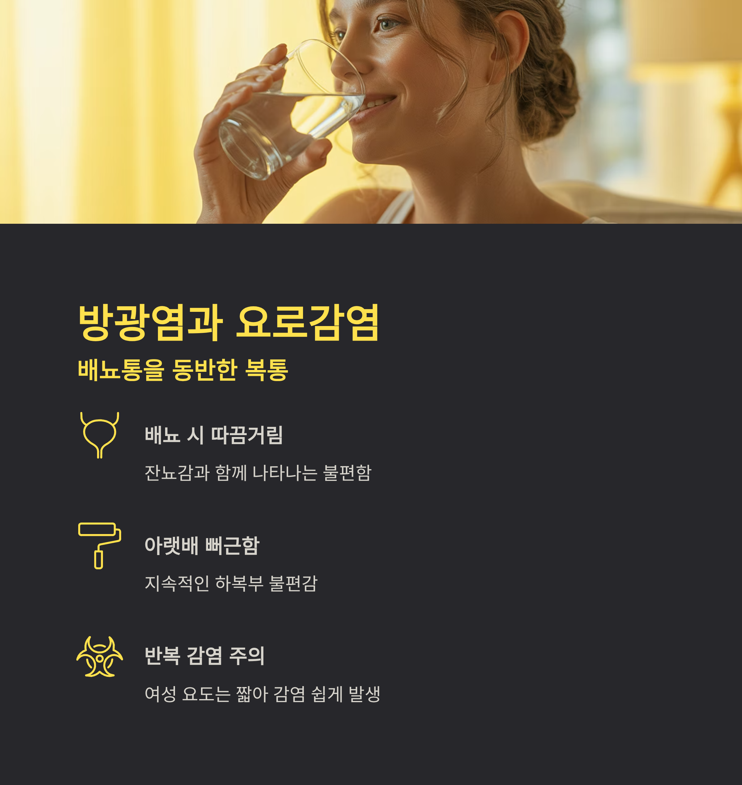 배뇨 시 따끔거림, 잔뇨감, 아랫배의 뻐근함이 함께 나타난다면