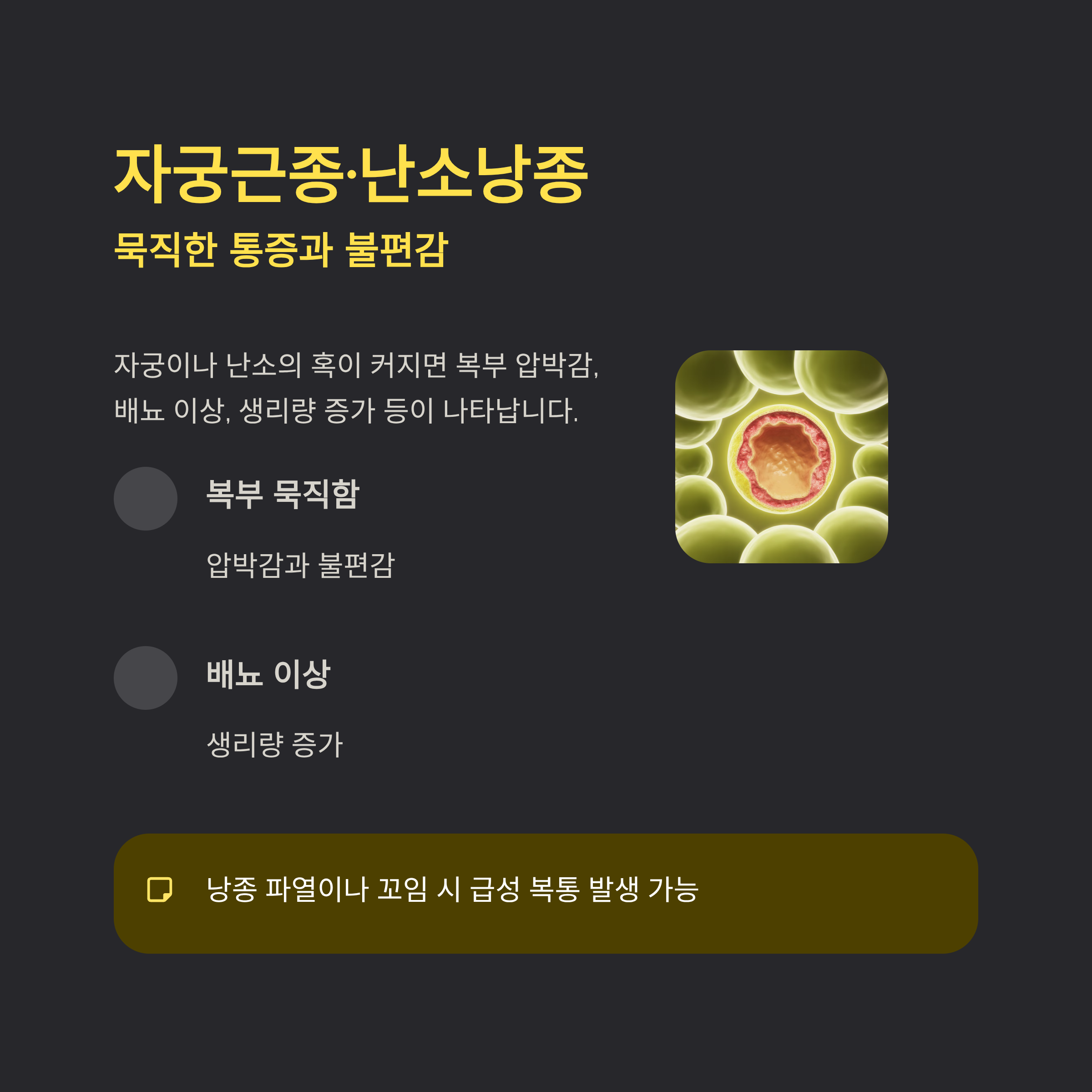 자궁근종·난소낭종: 묵직한 통증과 불편감