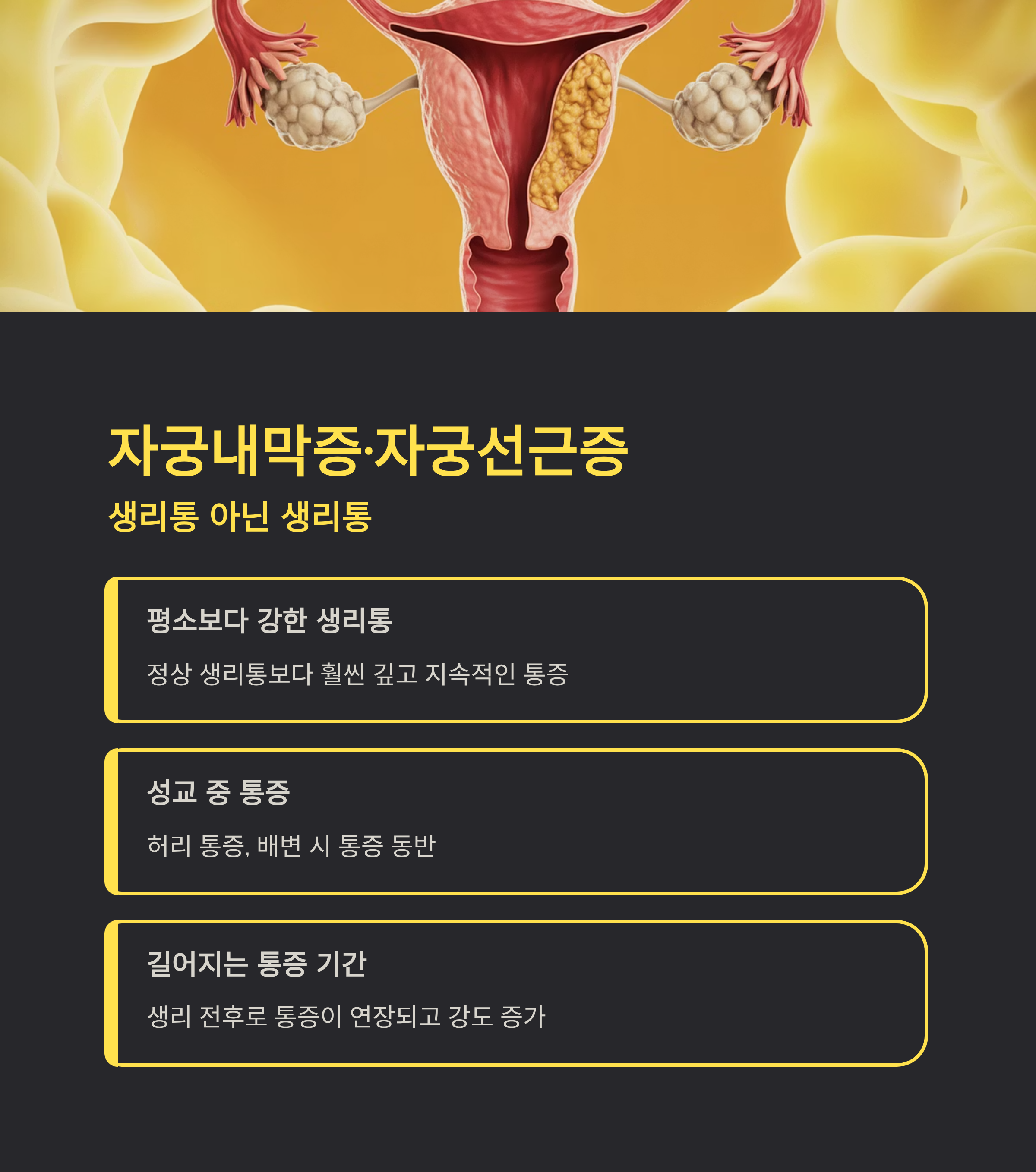 통증이 생리기간 전후로 길어지거나 통증의 강도가 점점 심해지는 경우라면