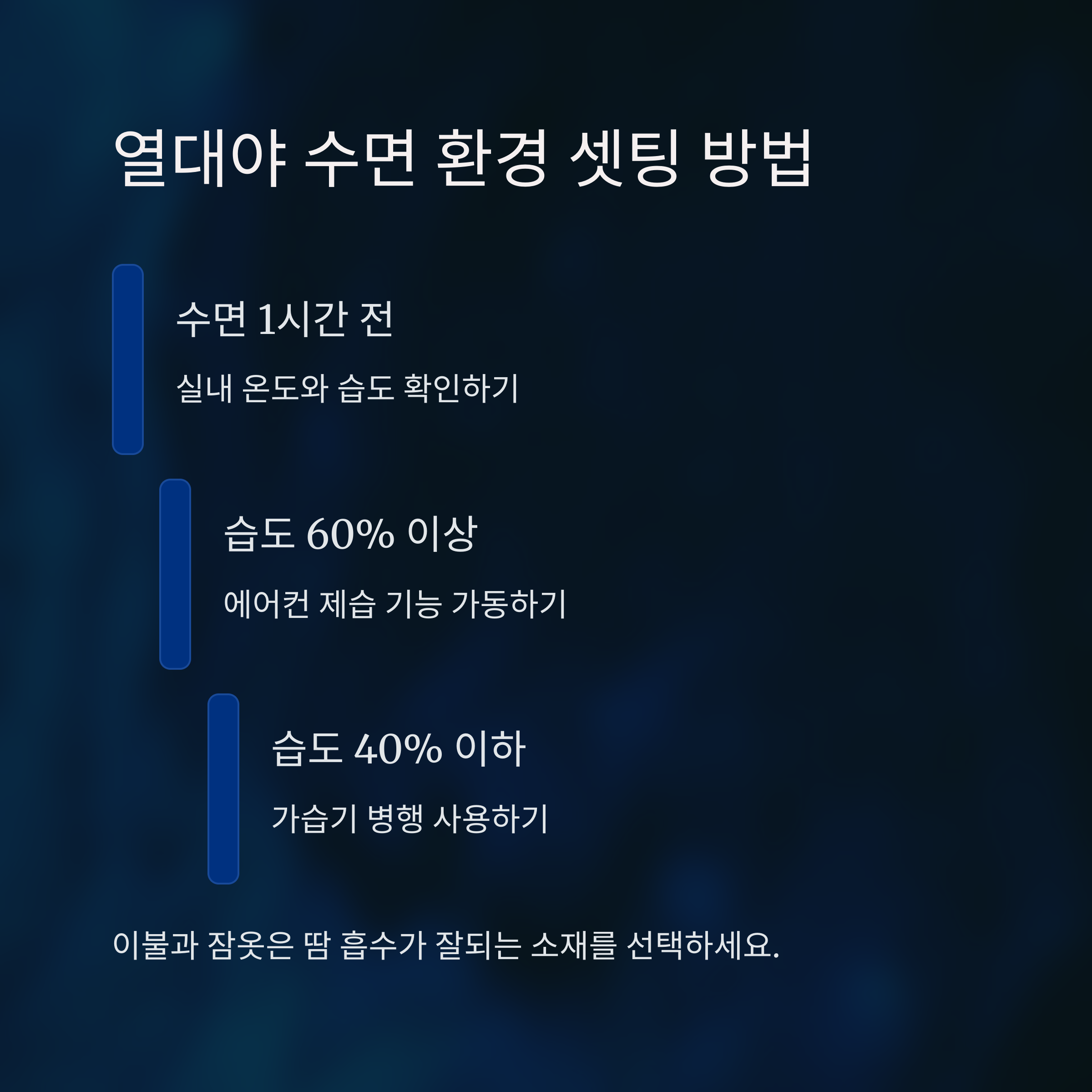 무더운 여름, 특히 열대야가 이어지는 시기에는 단순히 더운 것을 넘어서 수면의 질까지 떨어지게 만듭니다. 이때 가장 중요한 것이 바로 실내 습도 조절입니다. 전문가들은 열대야 속에서 숙면을 취하려면 50~60%의 습도를 유지해야 한다고 강조합니다. 본 글에서는 열대야의 정의부터 적정 습도, 관리 방법까지 상세히 정리해 드리겠습니다.