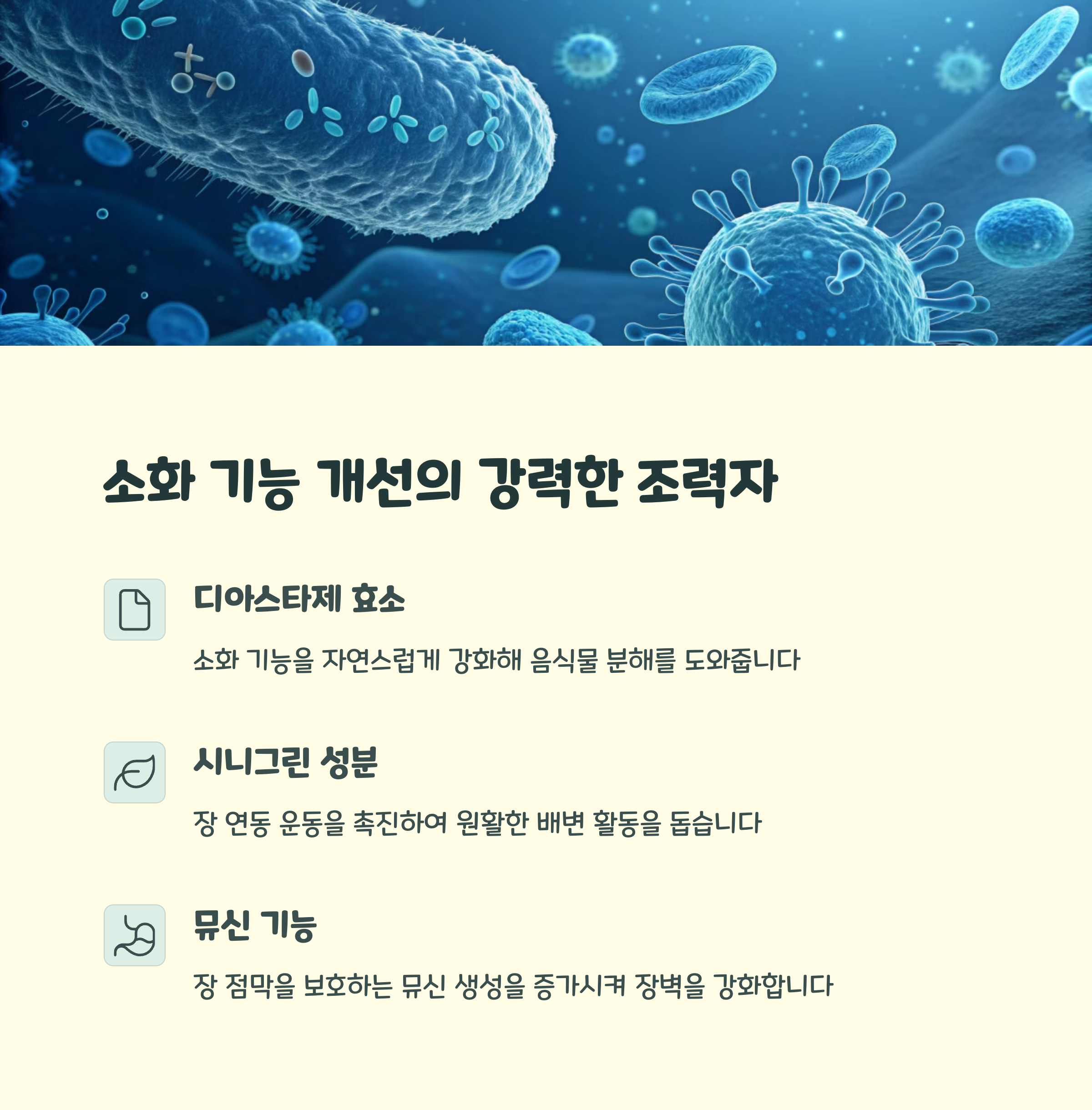 | 디아스타제로 장 운동 촉진 | 위산 분비 자극 주의 | 포드맵 성분 주의 |
