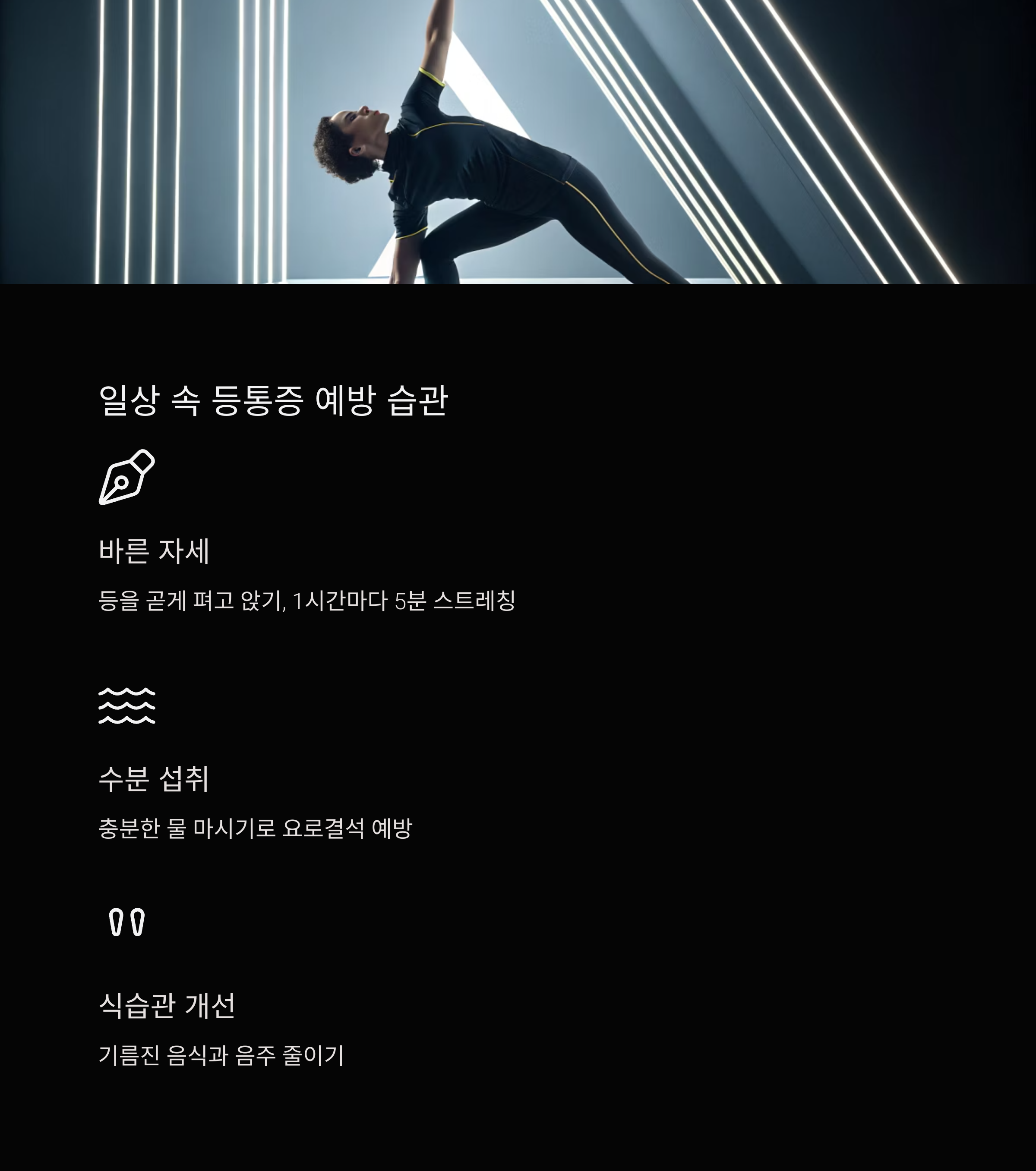통증 예방을 위해서는 생활 속 실천이 중요합니다.