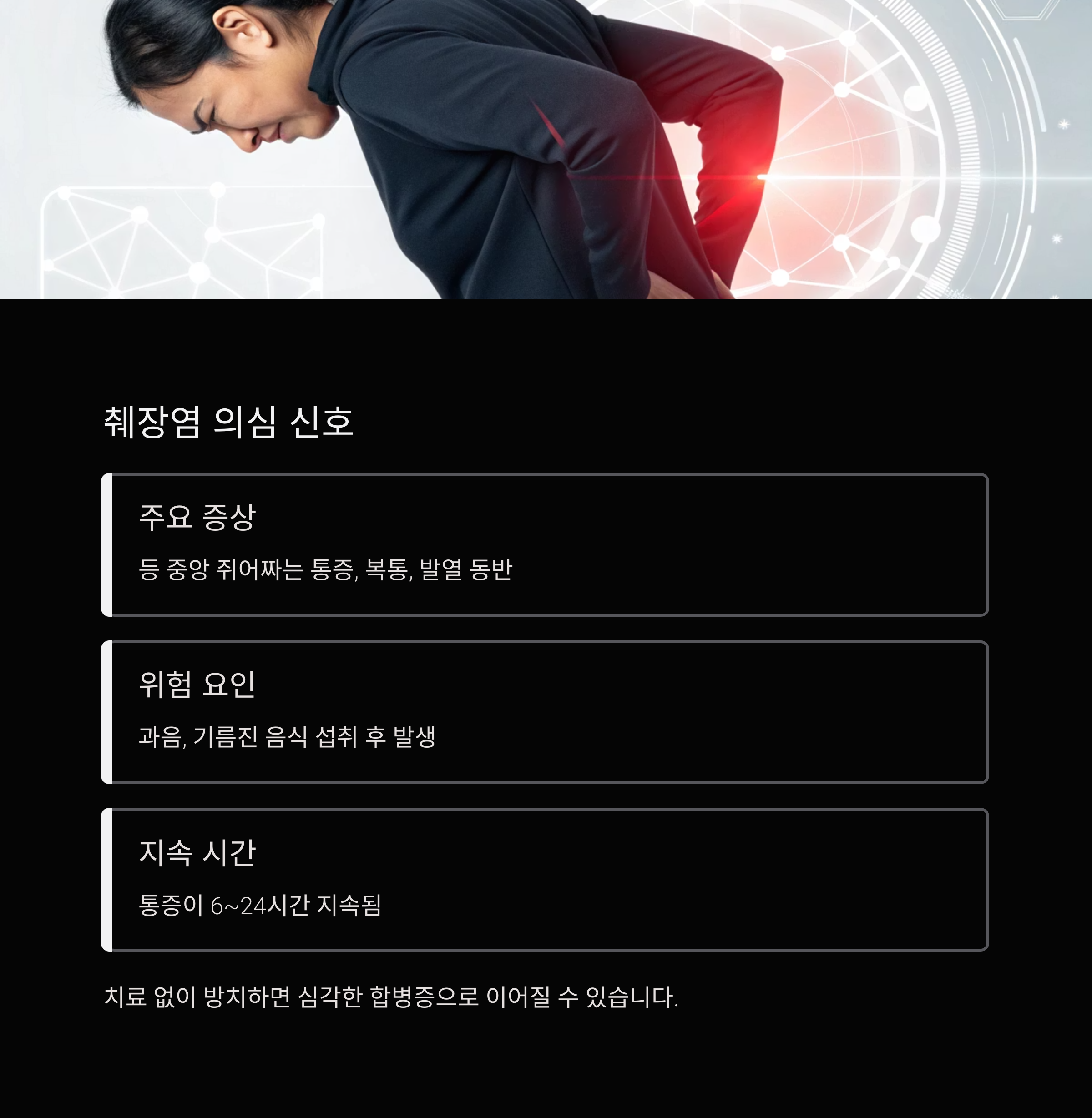 음식을 섭취한 직후에 통증이 나타난다면 더욱 의심이 필요합니다.