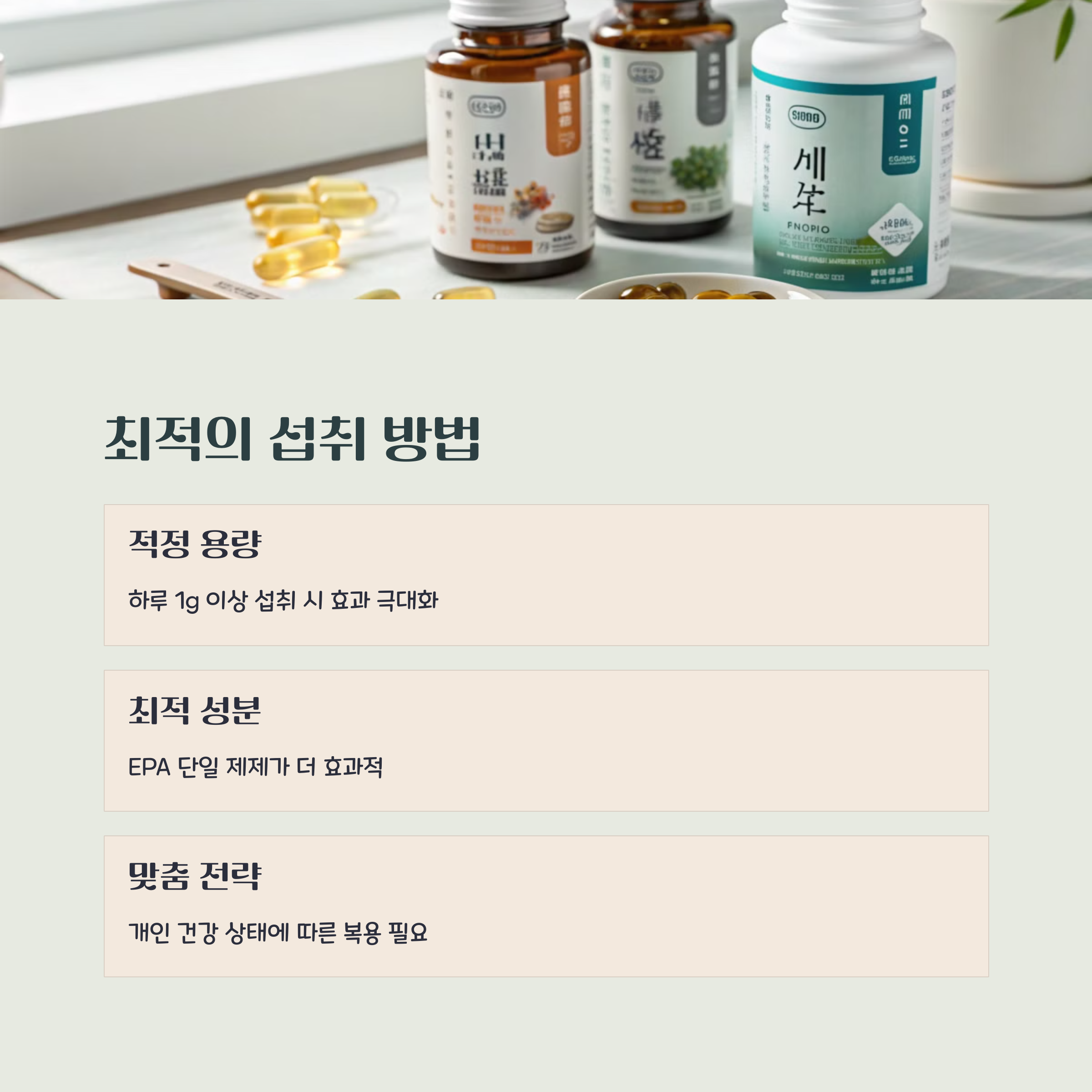 | EPA 단일 제제가 효과 우수 | 심장 기능, 혈압 조절, 항산화 작용 | 유전자와 기저 질환 고려한 복용 권장 |