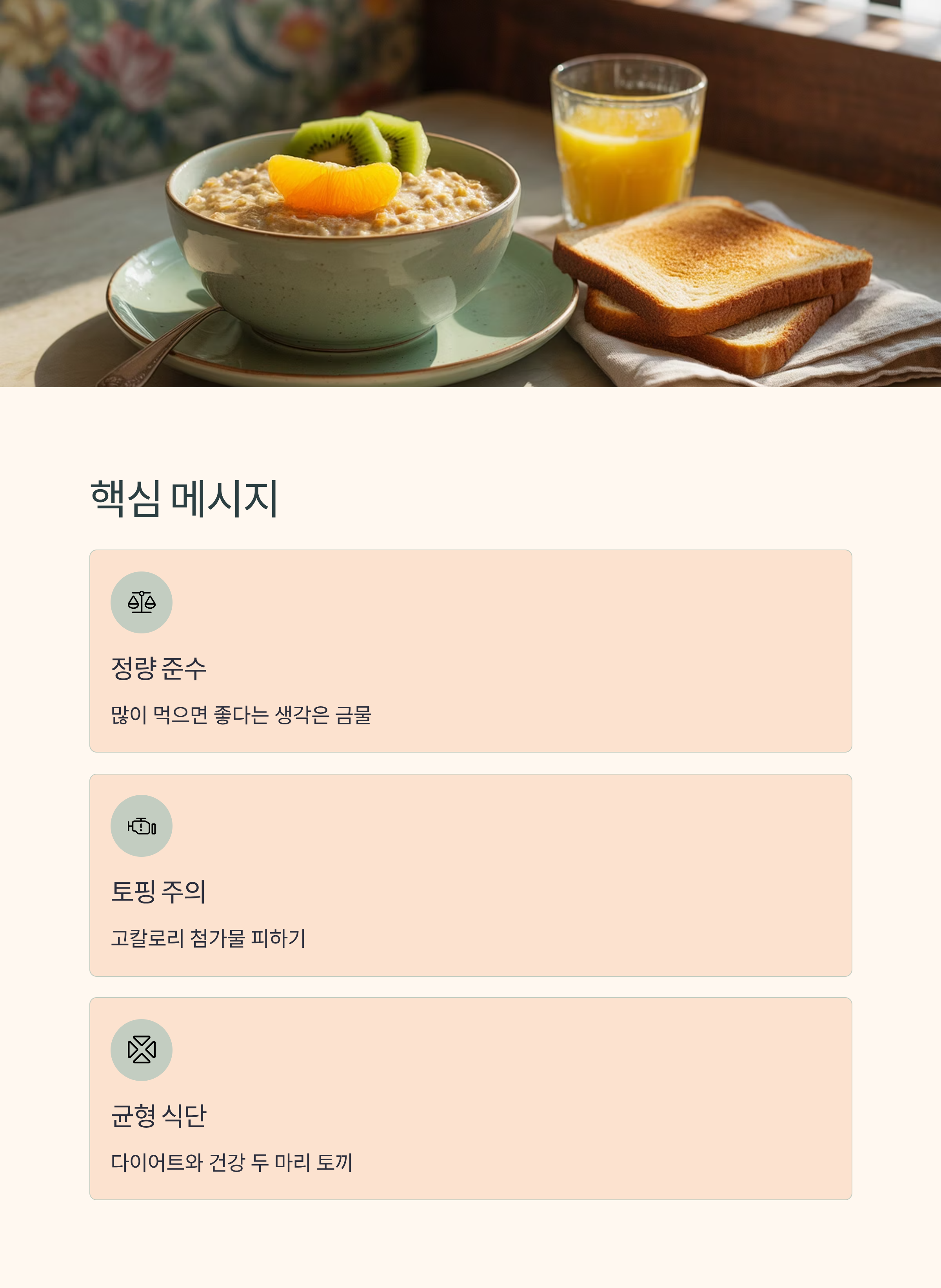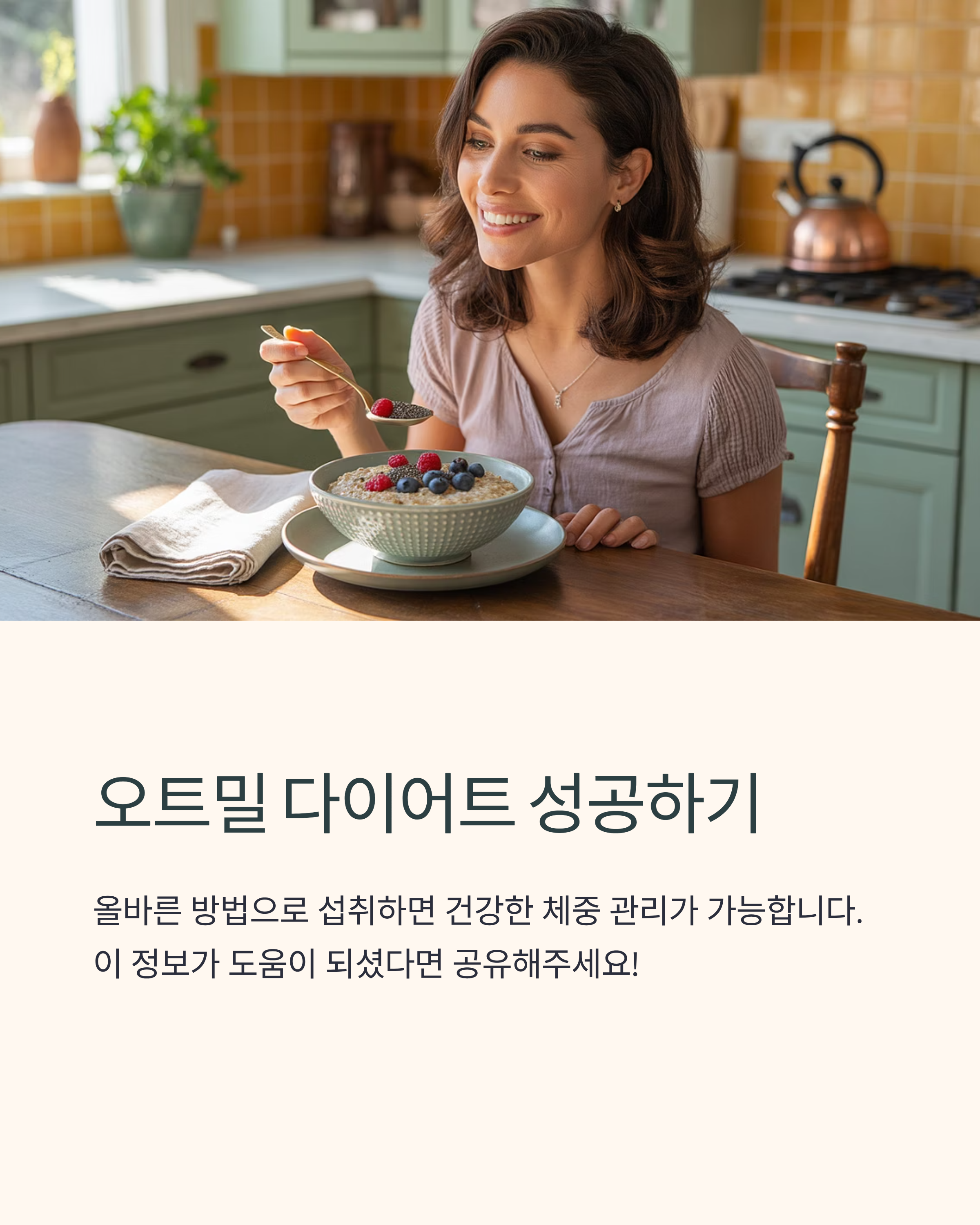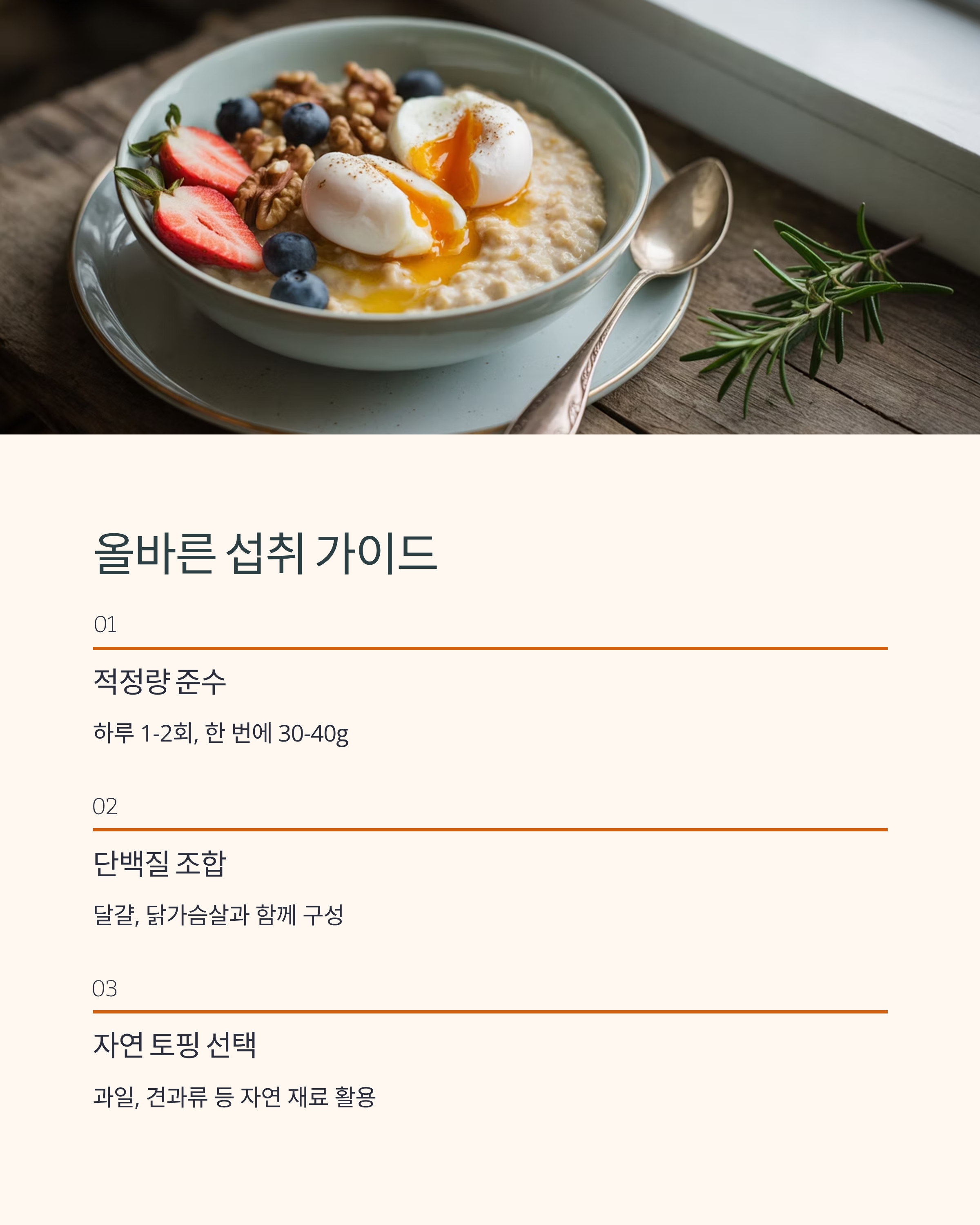 오트밀은 분명 건강에 좋은 곡물이지만, ‘많이 먹으면 좋다’는 생각은 잘못된 접근입니다. 정량을 지키고, 고칼로리 토핑을 피하며, 균형 잡힌 식단 속에서 활용할 때 비로소 다이어트와 건강 두 마리 토끼를 잡을 수 있습니다.