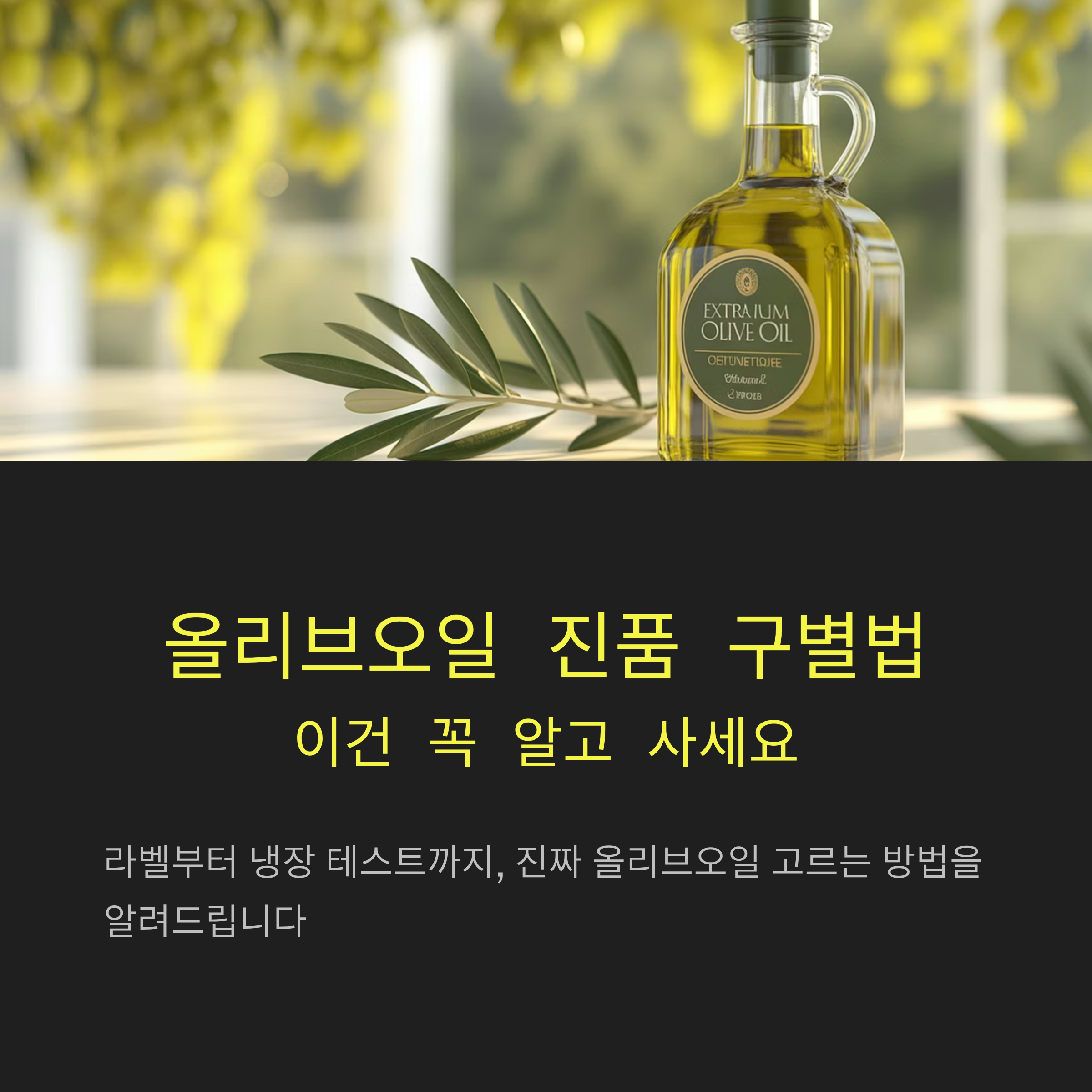 올리브오일을 고를 때 '엑스트라 버진'이라는 단어 하나만 믿고 선택하셨다면, 오늘 이 글이 꼭 필요합니다. 시중에는 진짜보다 '진짜처럼 보이는' 제품들이 많아 주의가 필요합니다. 라벨 속 인증 마크부터 병의 색, 맛과 향의 특징, 냉장 테스트까지! 진짜 올리브오일을 구별하는 법을 꼼꼼히 알려드릴게요.
