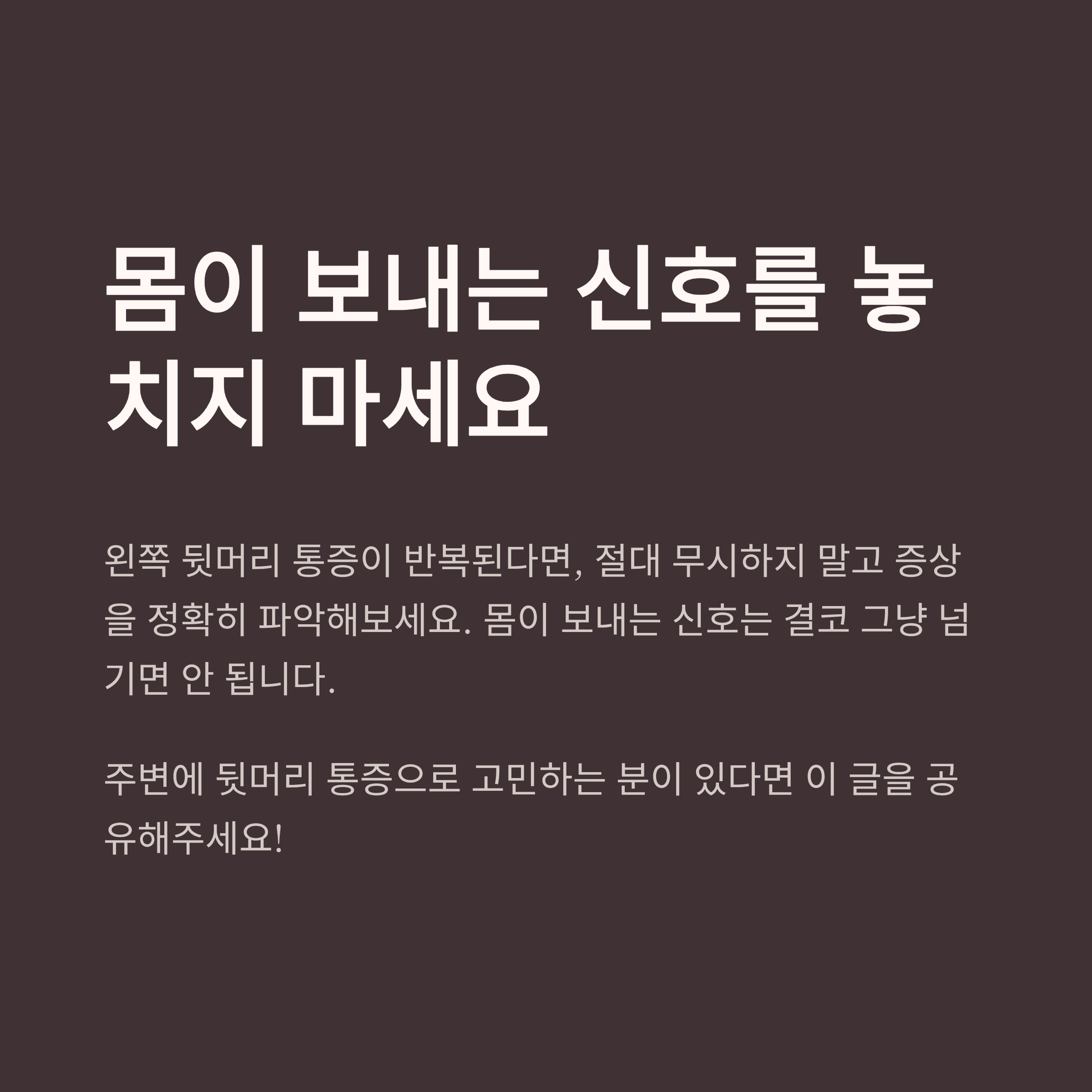 왼쪽 뒷머리 통증이 반복된다면, 절대 무시하지 말고 증상을 정확히 파악해보세요. 몸이 보내는 신호는 결코 그냥 넘기면 안 됩니다.