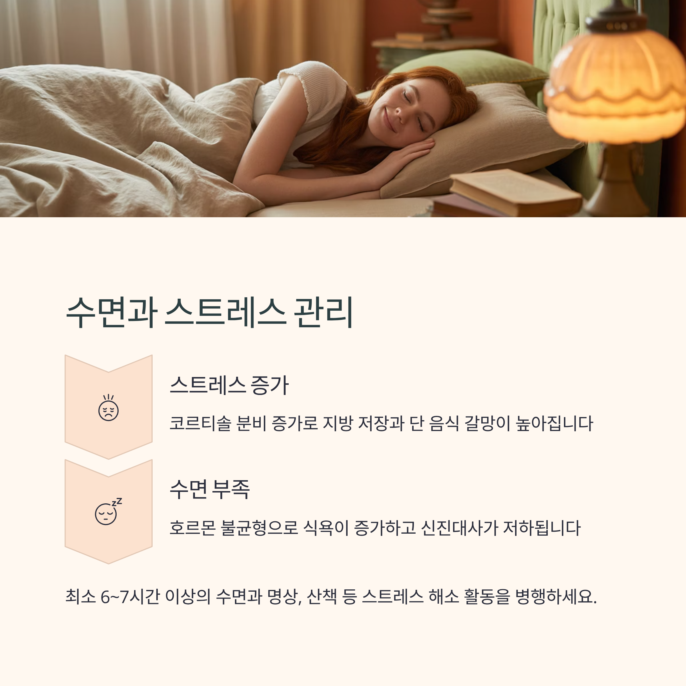 생활 습관 수면 7시간 이상 + 스트레스 관리