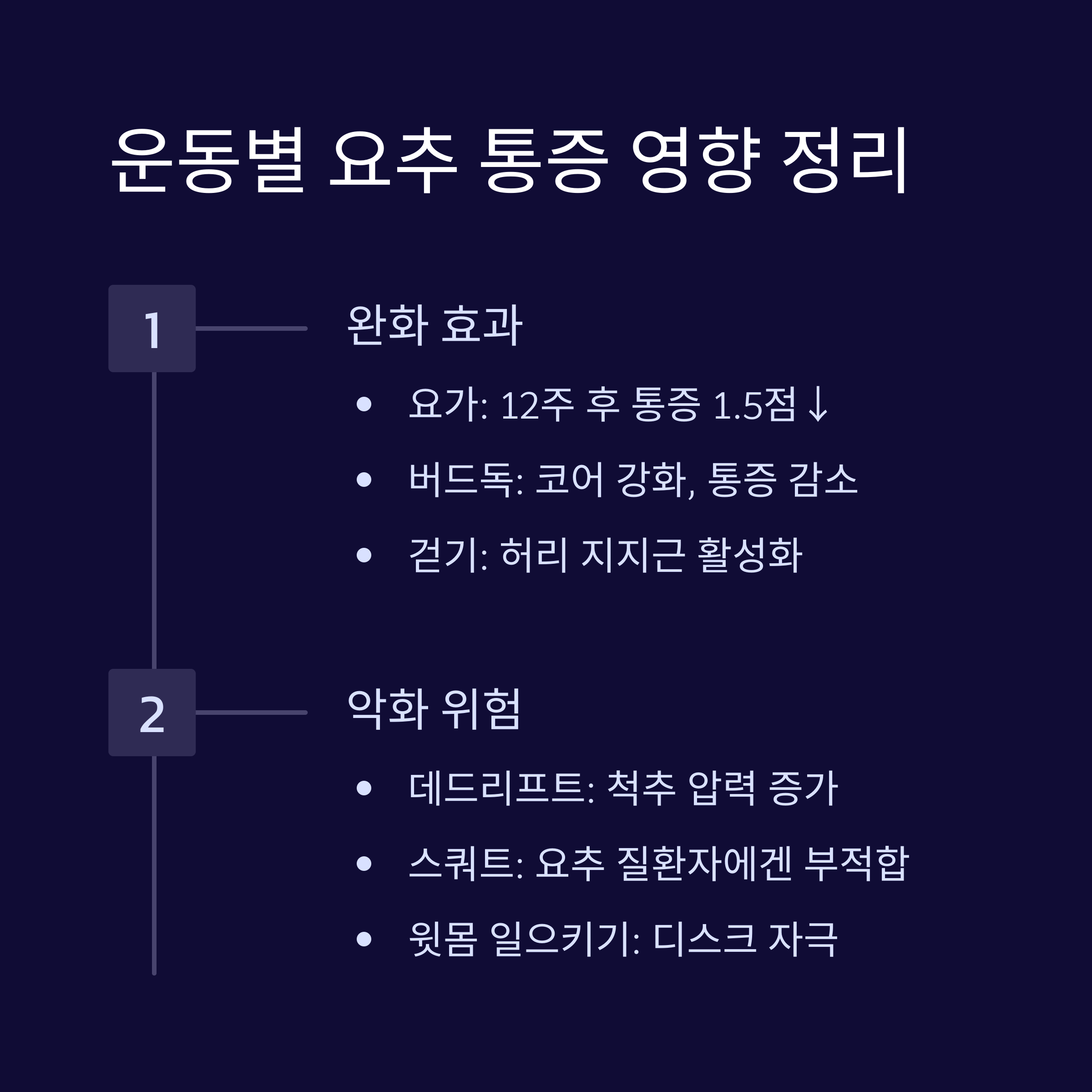 요약: 운동별 요추 통증 영향 정리