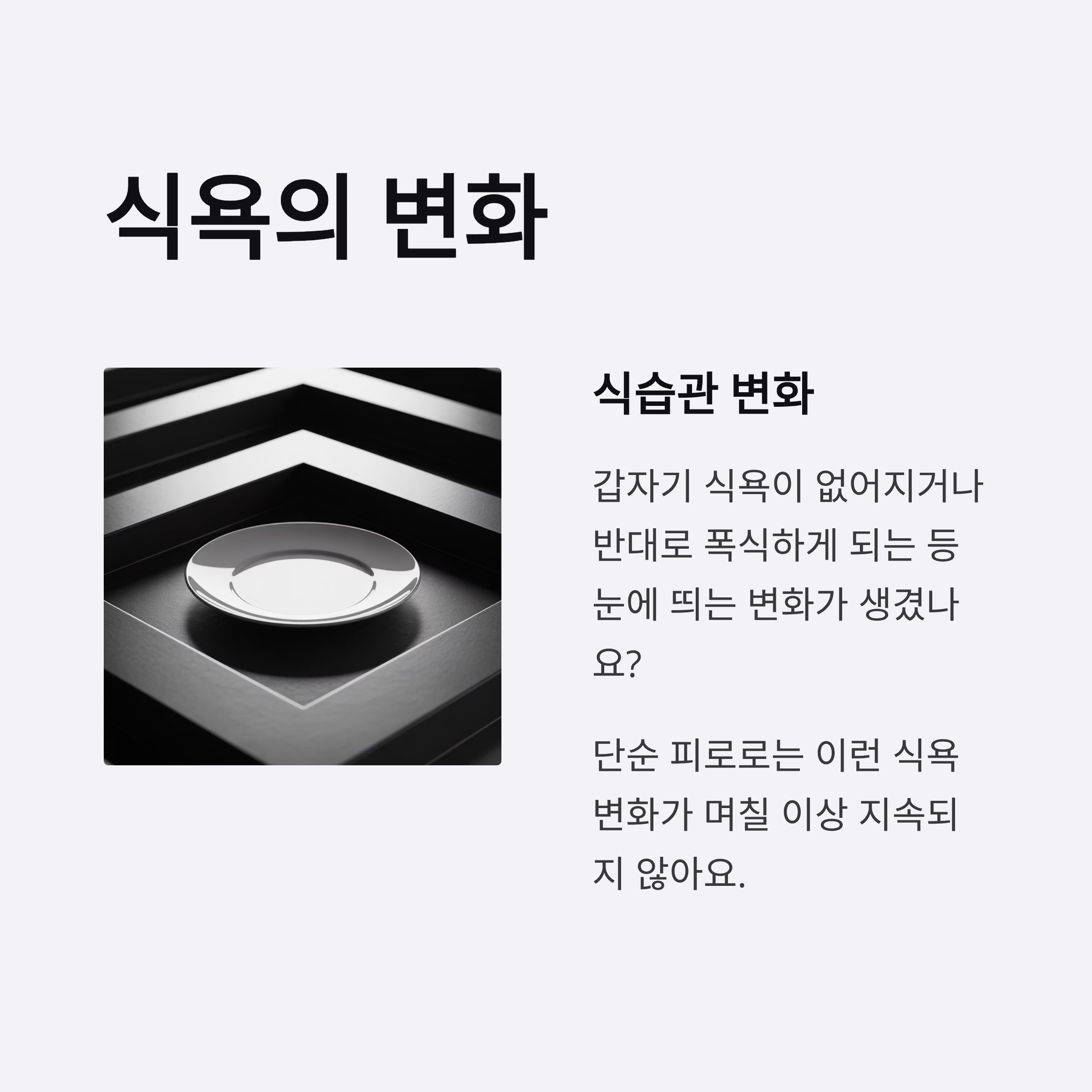 단순 피로로는 이런 식욕 변화가 며칠 이상 지속되진 않죠.