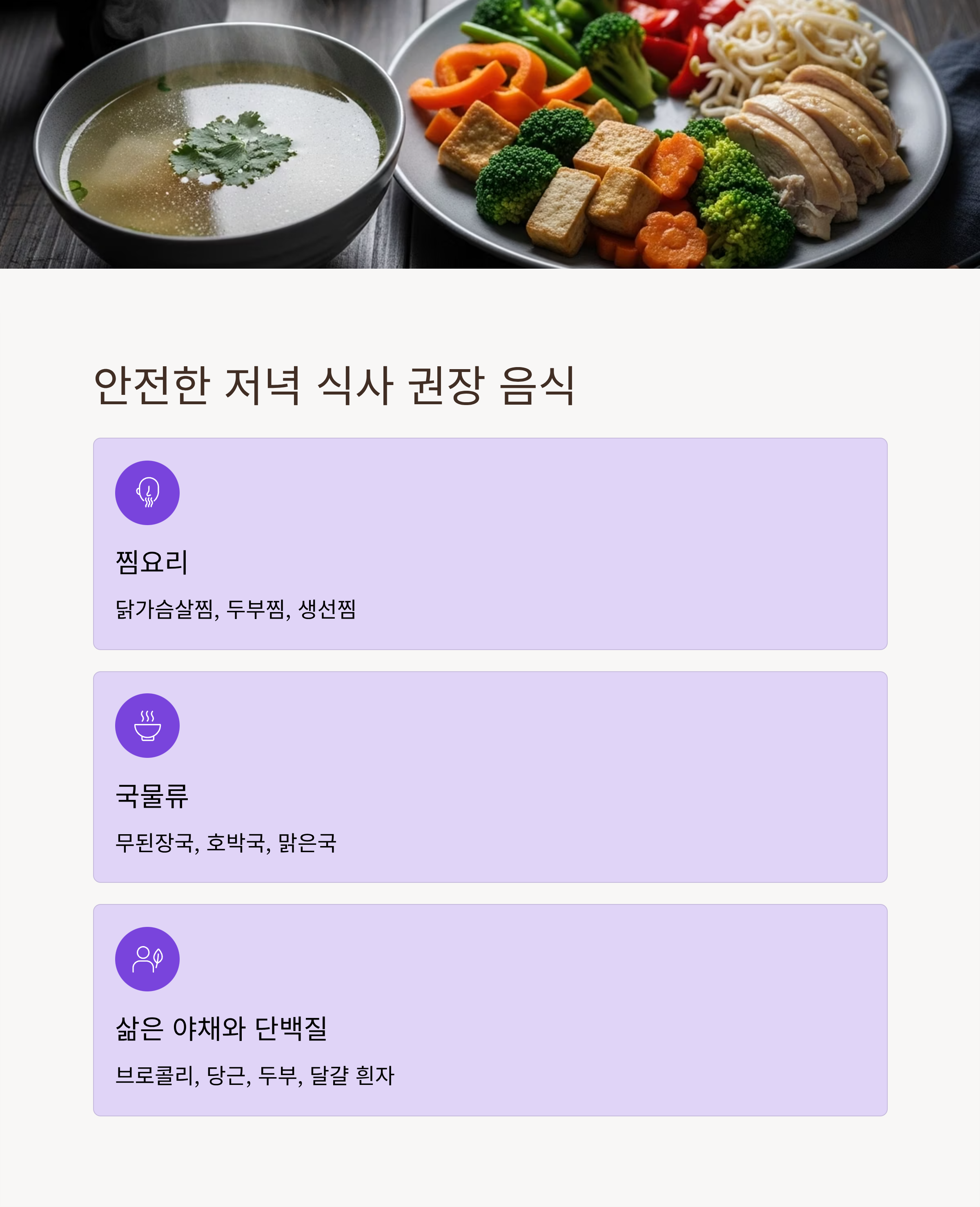 안전한 저녁 식사 예시와 권장 음식