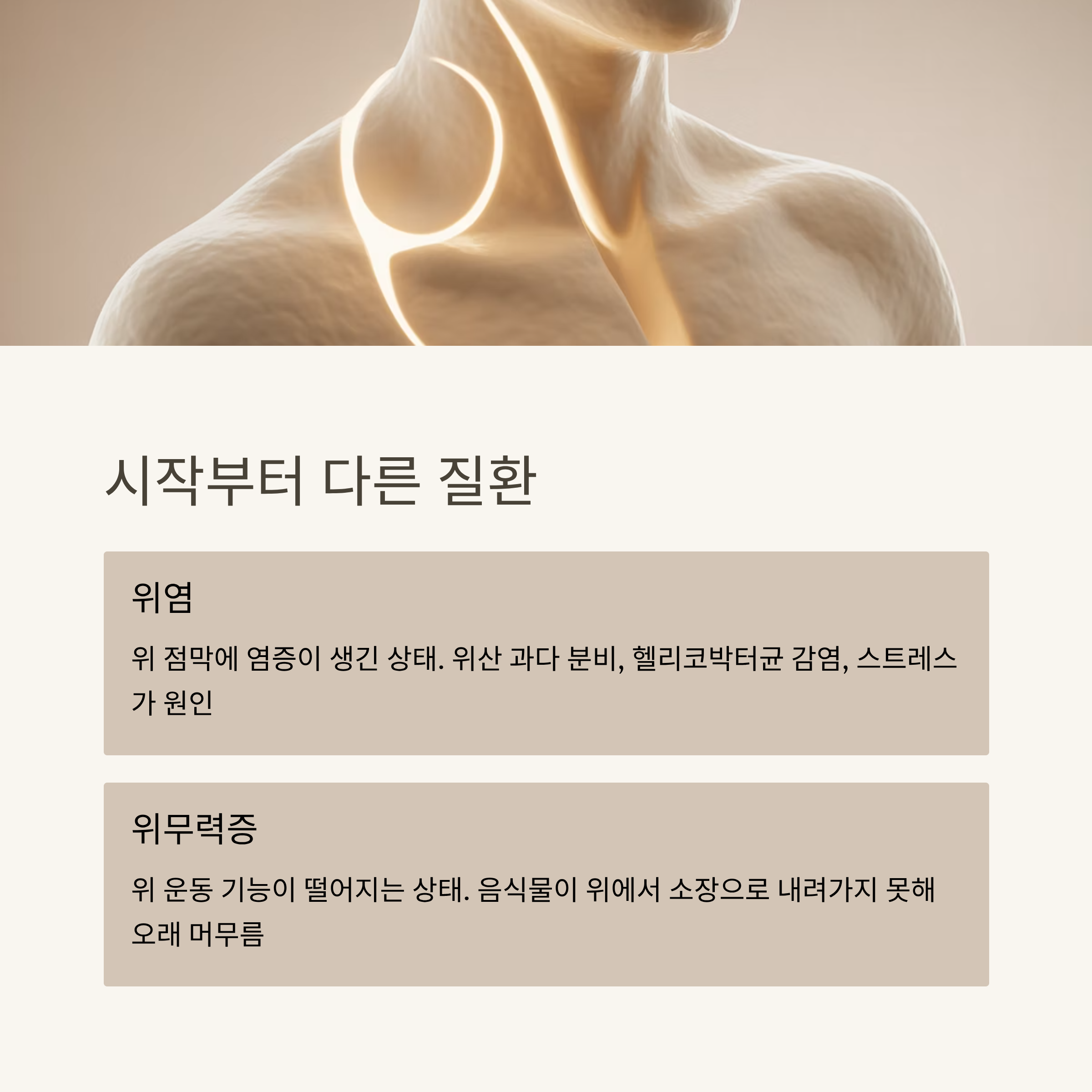 위 건강이 흔들리면 하루가 힘들어집니다. 자신에게 나타나는 증상이 단순한 위염인지, 더 복잡한 위무력증인지 꼼꼼히 살펴보세요. 조기에 진단하고 적절하게 관리하면 삶의 질이 훨씬 좋아집니다.