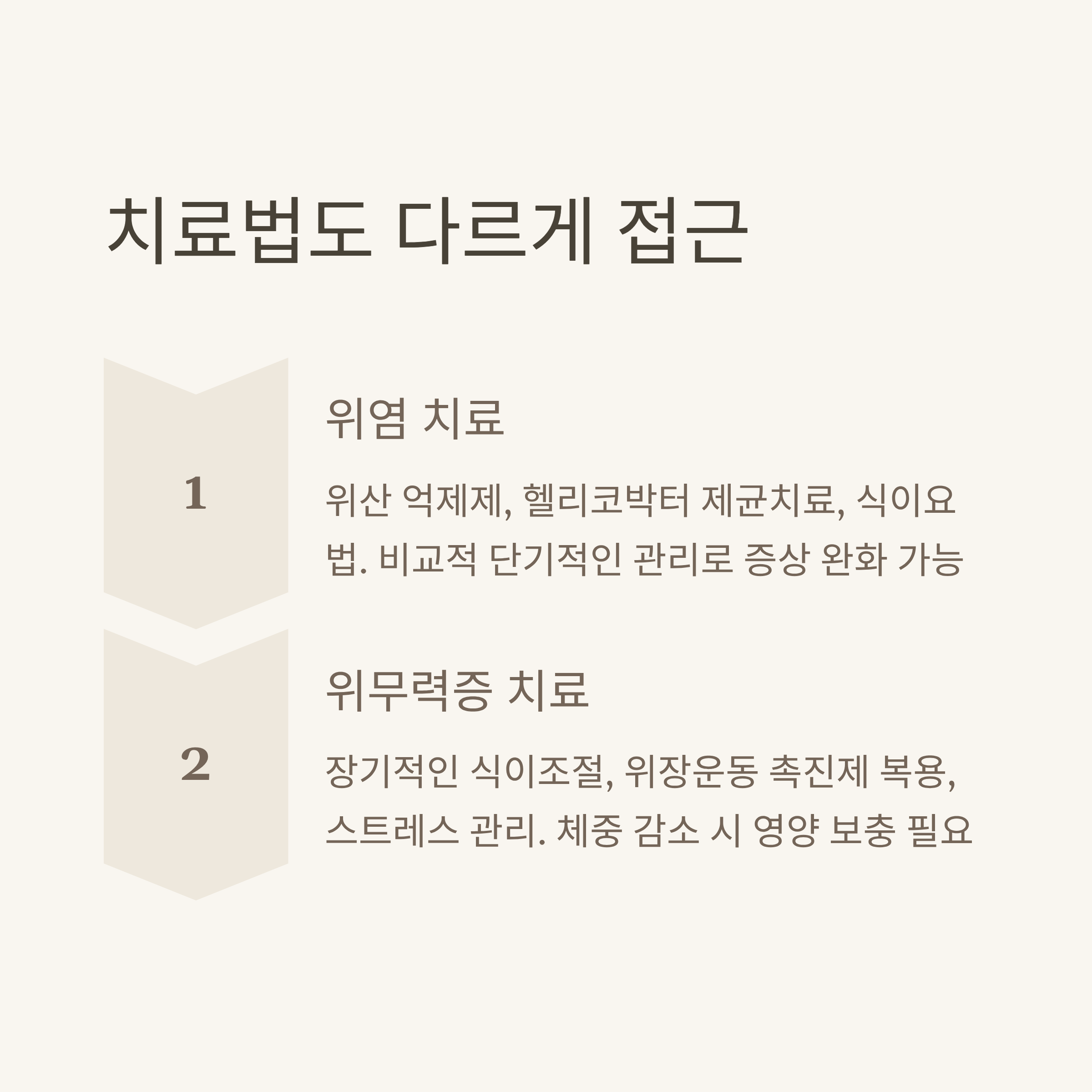 둘 다 공통적으로 자극적인 음식은 피해야 하며, 특히 위무력증은 식후 바로 눕지 않는 생활 습관이 도움이 됩니다.
