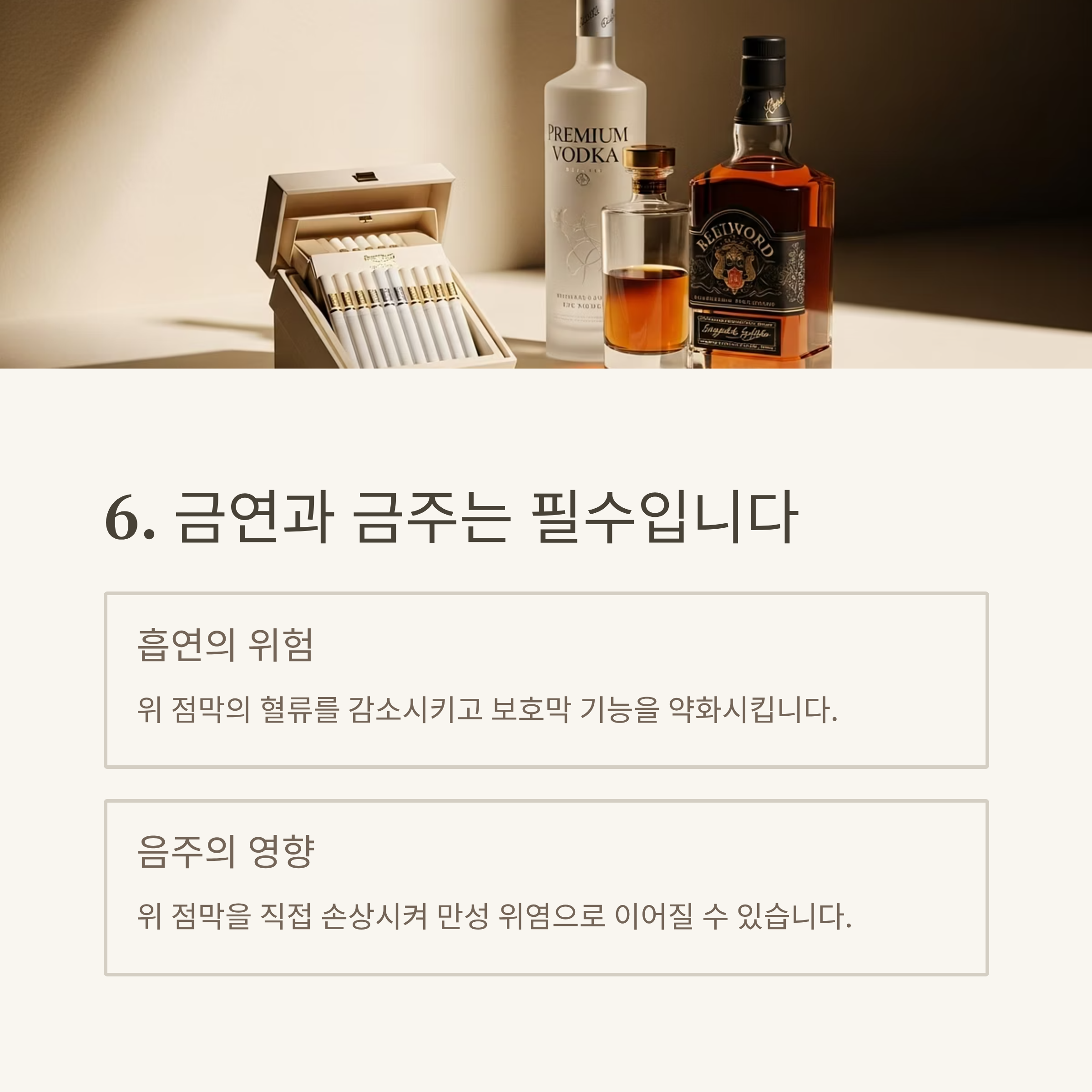 | 음주 | 위벽 자극, 염증 유발 |