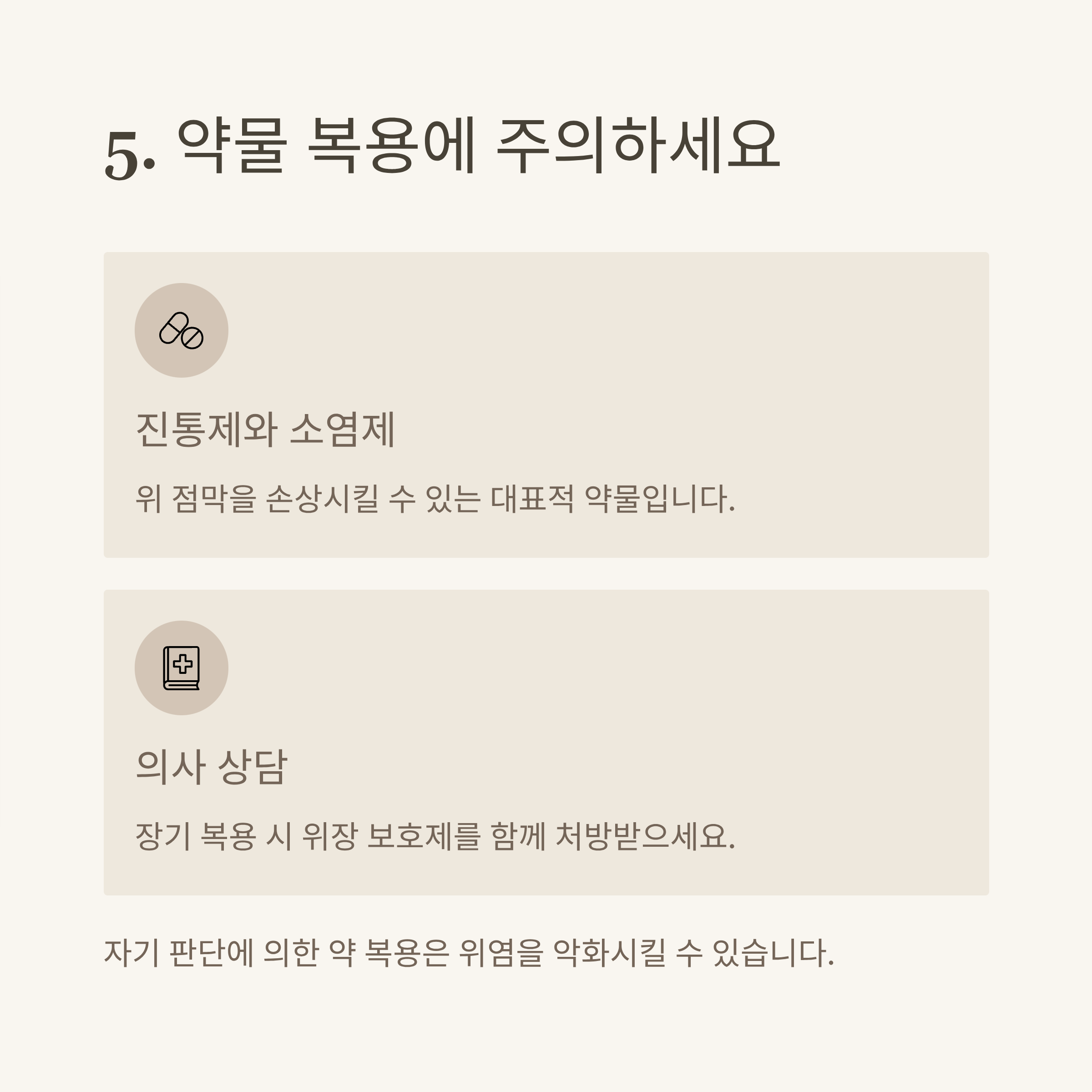진통제와 소염제는 위 점막을 손상시킬 수 있는 대표적인 약물입니다.