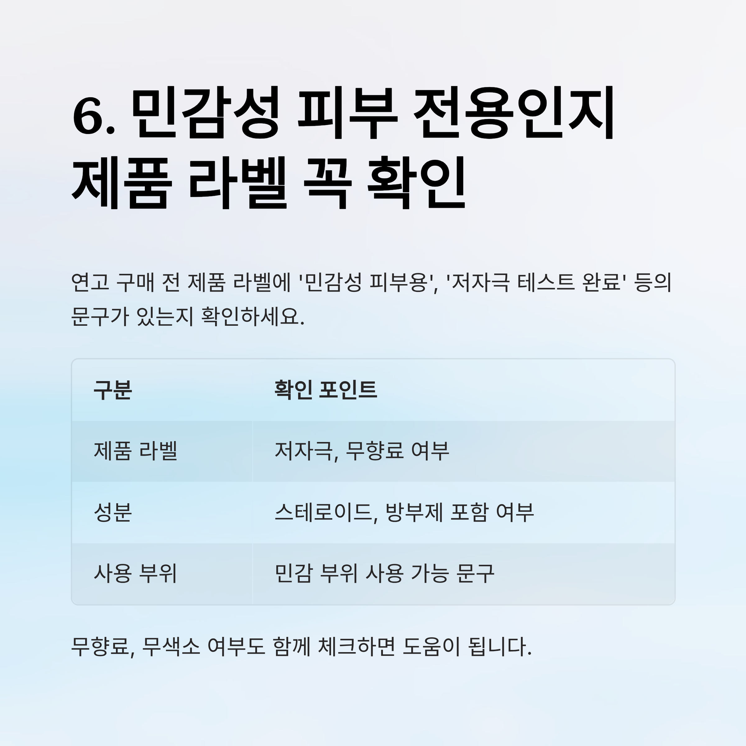 6. 민감성 피부 전용인지 제품 라벨 꼭 확인
