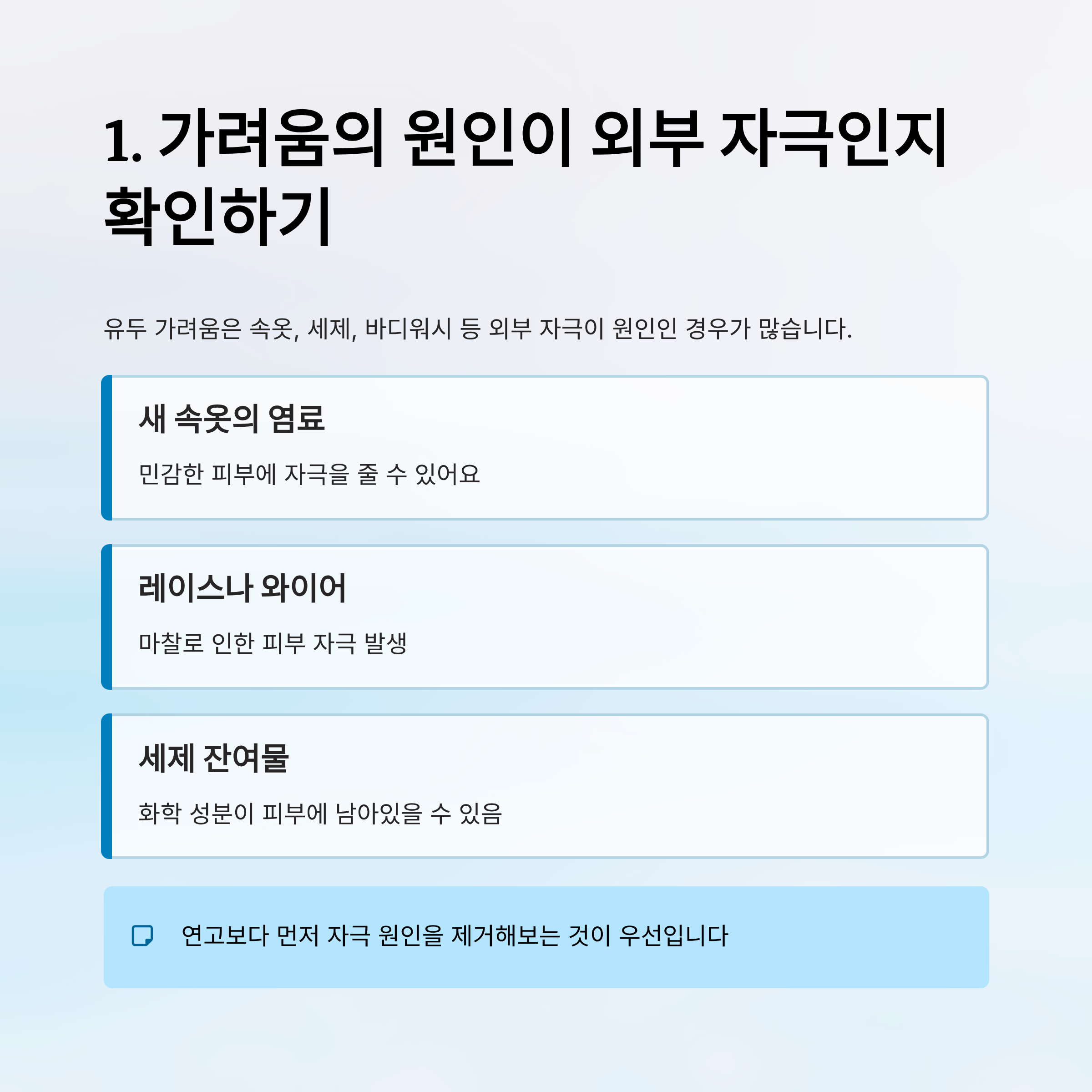 유두 가려움은 속옷, 세제, 바디워시 등 외부 자극이 원인인 경우가 많습니다.