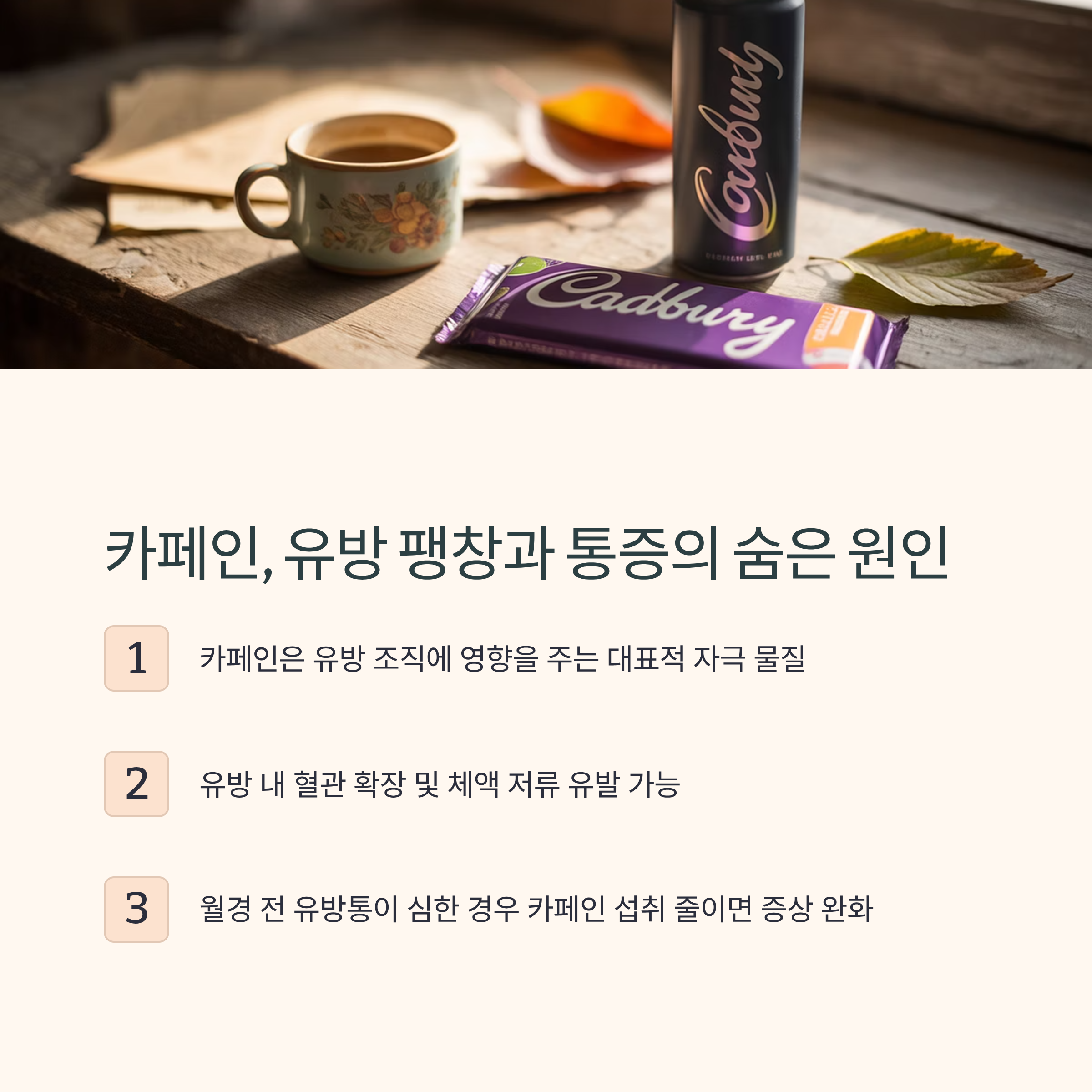 이는 카페인이 유방 내 혈관을 확장시키거나 체액 저류를 유발하기 때문인데요,