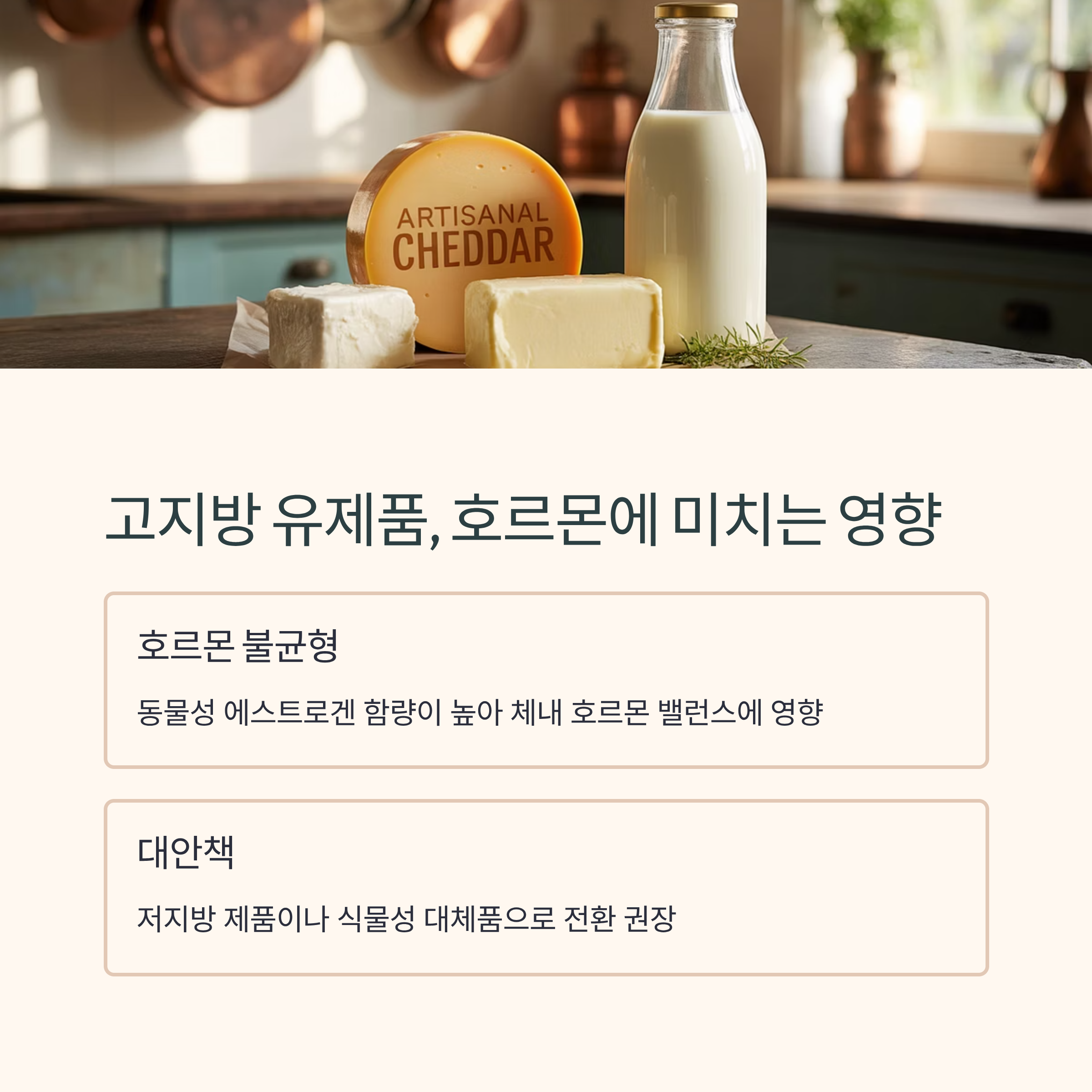 우유, 치즈, 버터 등 고지방 유제품은 동물성 에스트로겐 함량이 높아