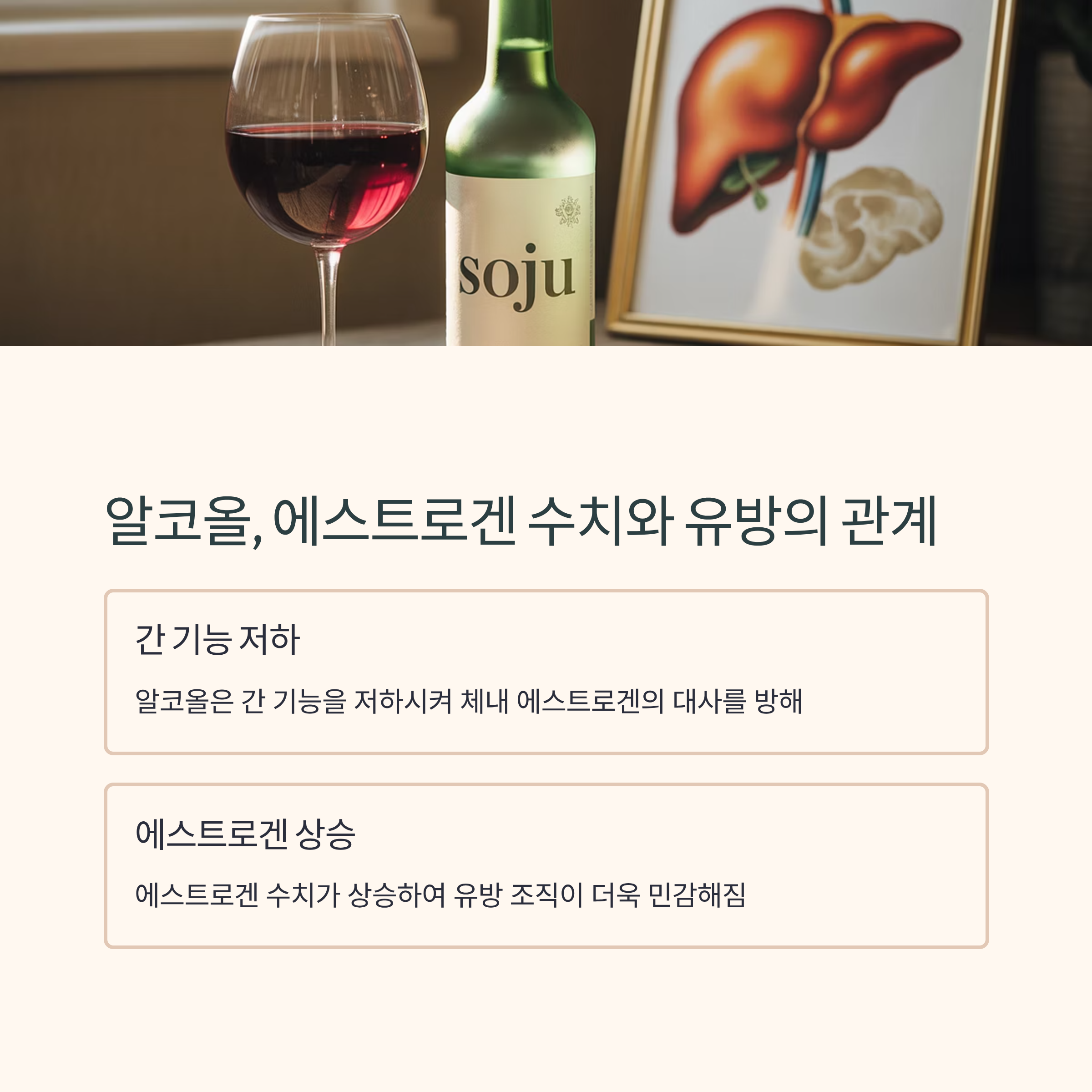 알코올은 간 기능을 저하시켜 체내 에스트로겐의 대사를 방해할 수 있습니다.