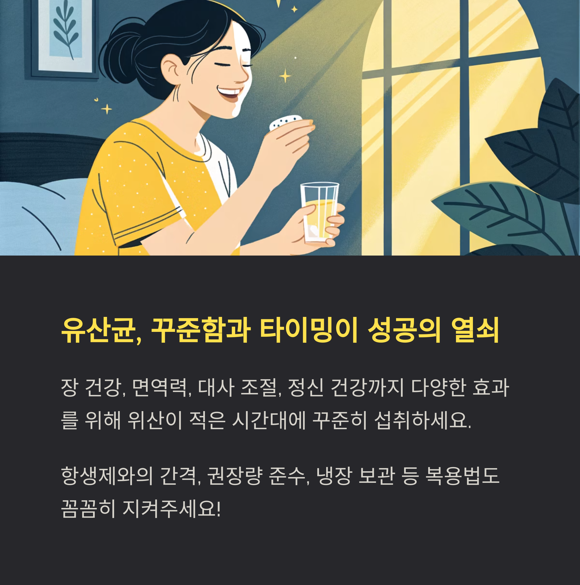 결론: 유산균 복용은 꾸준함과 타이밍이 좌우한다
